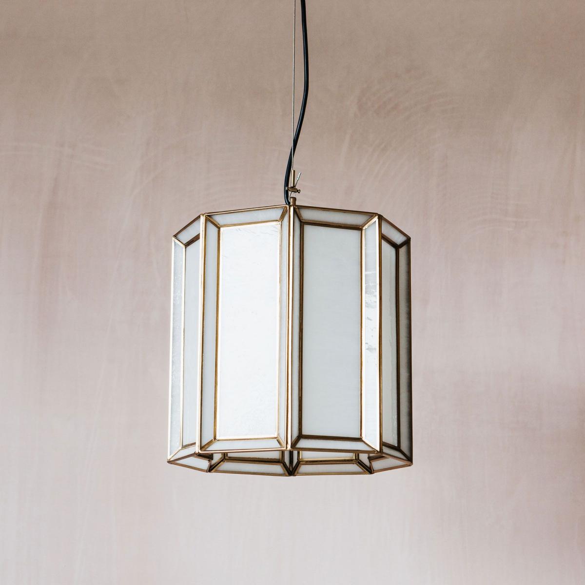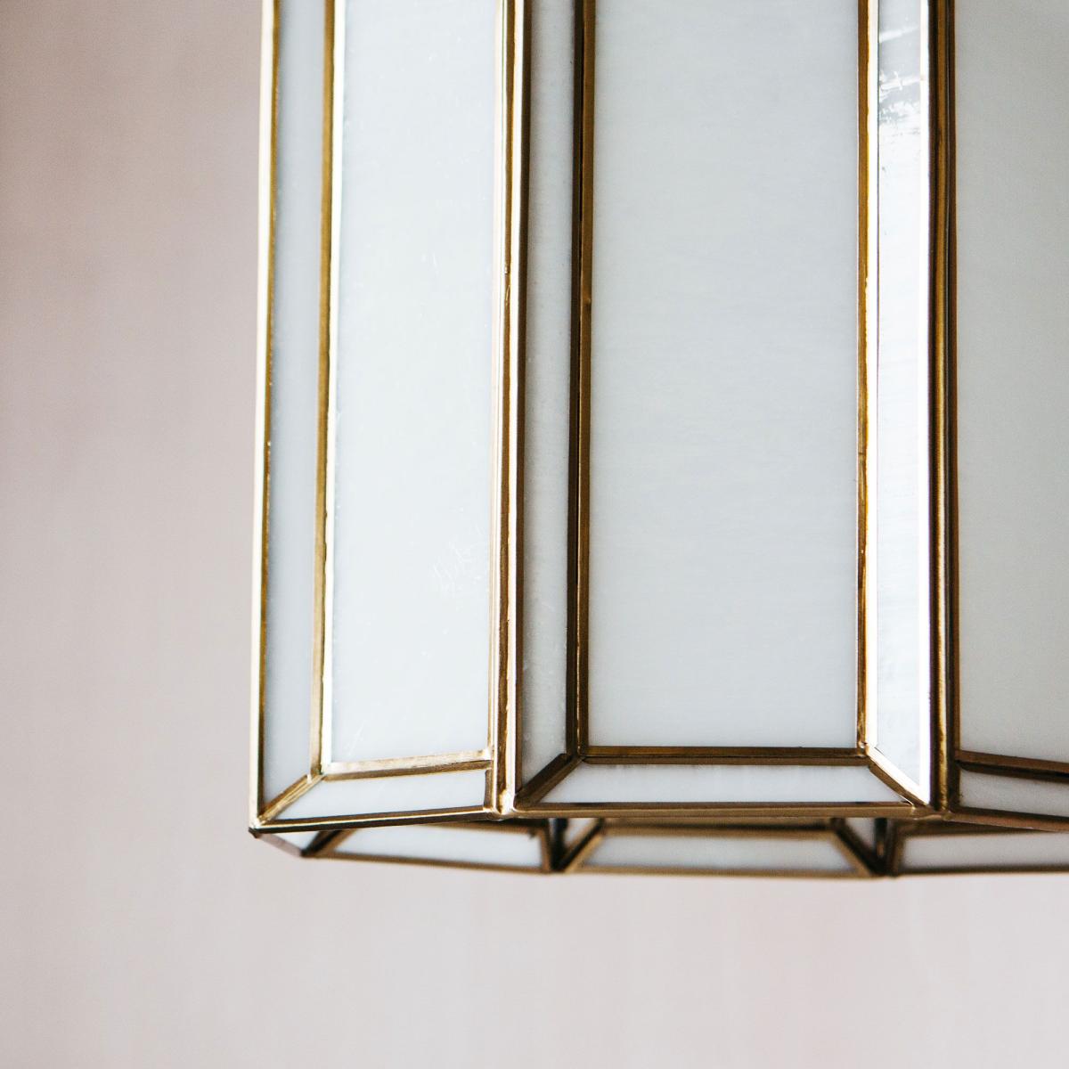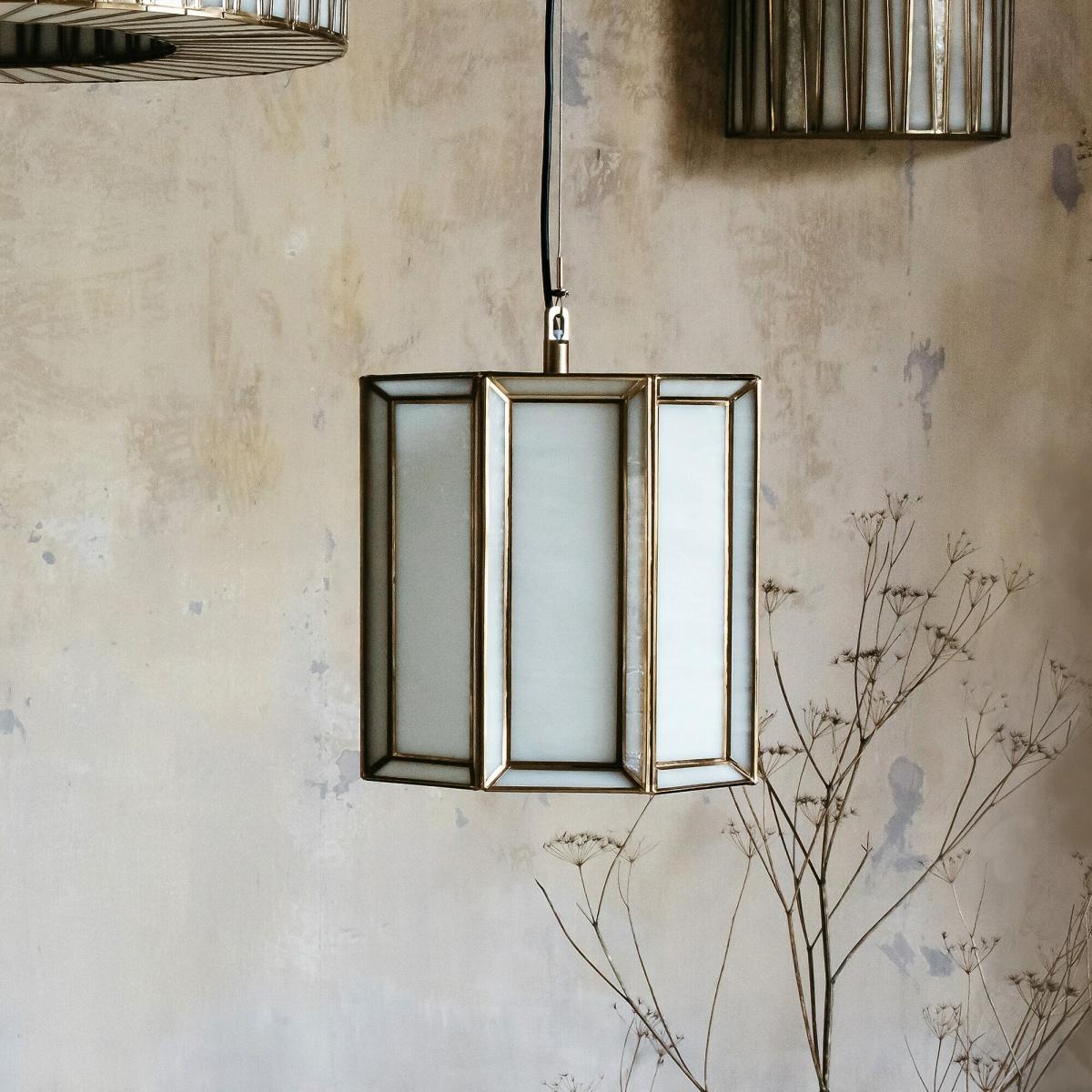 Illuminating your home with Art Deco inspiration, the Trumen pendant features frosted glass panels bordered in gold linework for Gatsby approved lighting.