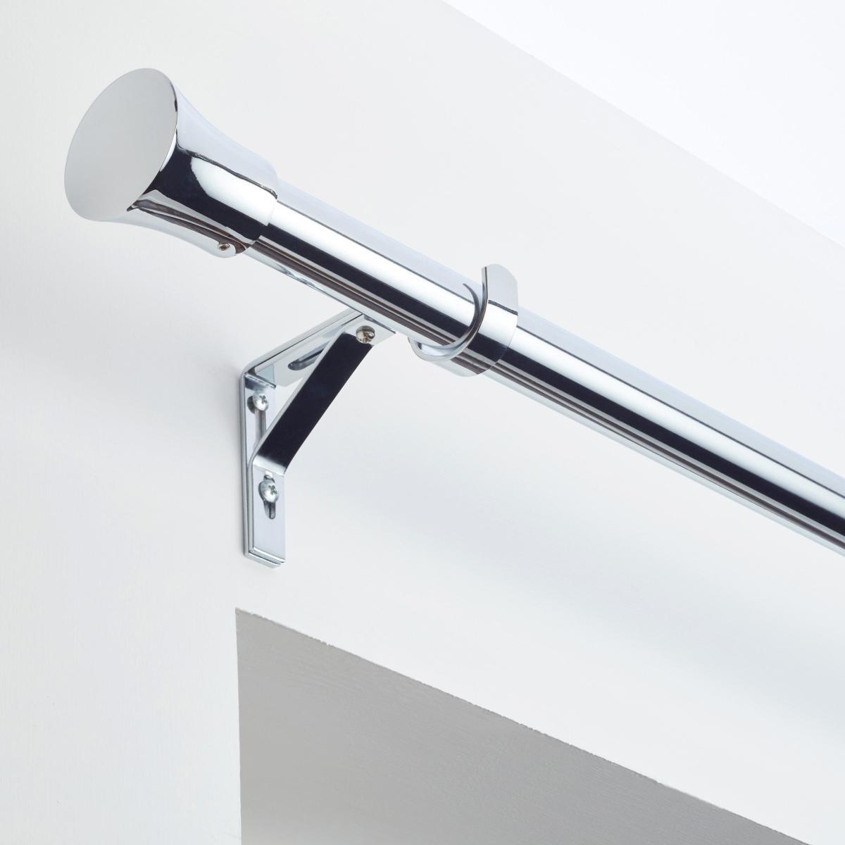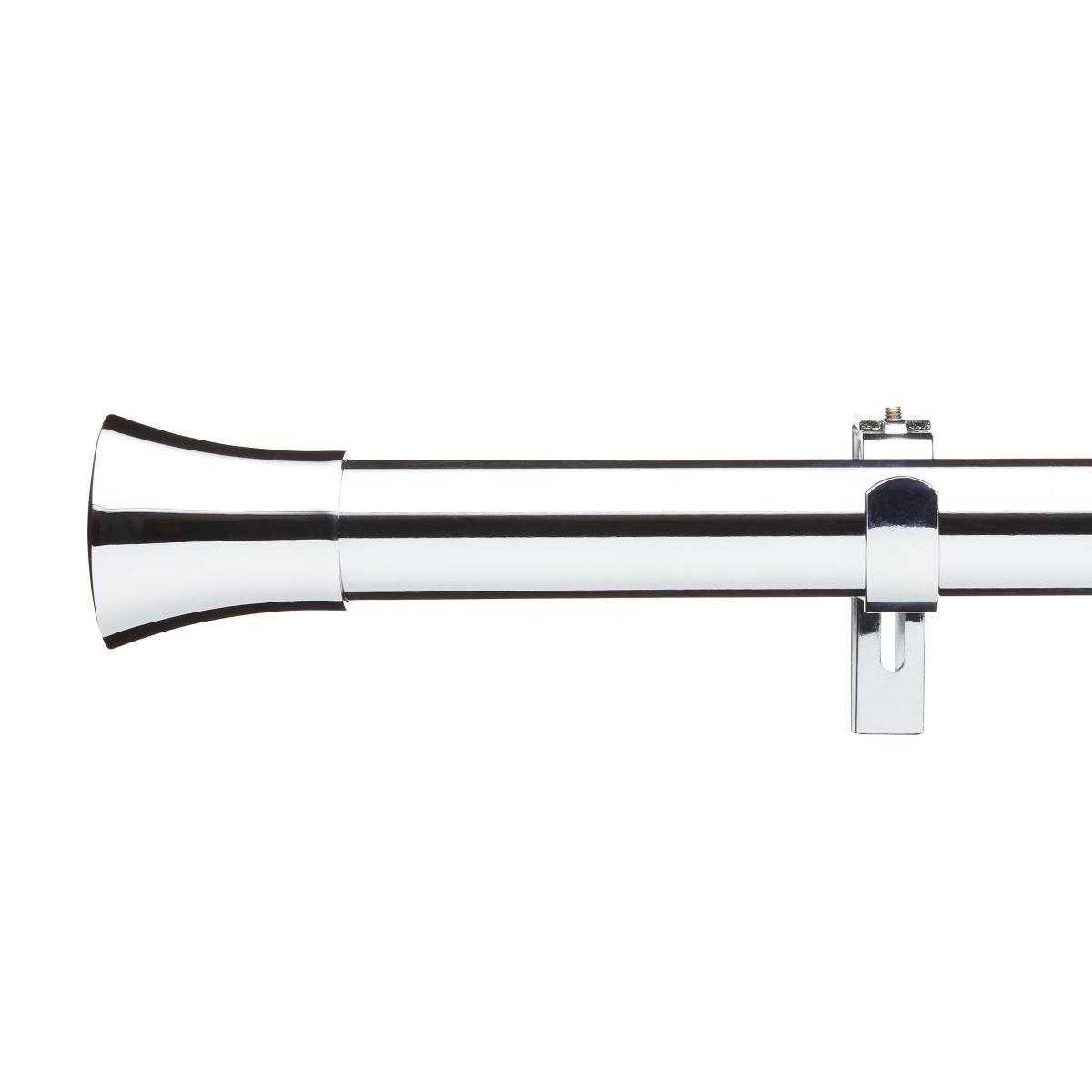 Suitable for medium weight curtains, this trumpet pole has a 25-28mm pole diameter with a beautiful chrome finish. The telescopic design allows you to adjust the pole between the two stated sizes so it fits ,your window to the size you require without cutting the pole down. Complete with simple, trumpet shaped stud finials, the curtain pole also includes any brackets, fixings and instructions required, making the pole easy to install. Rings are not includes with this pole making it suitable for eyelet curtains. Please note:. The pole length stated does not include the finials. Please allow up to an additional 14cm to the pole length to accommodate the finials.