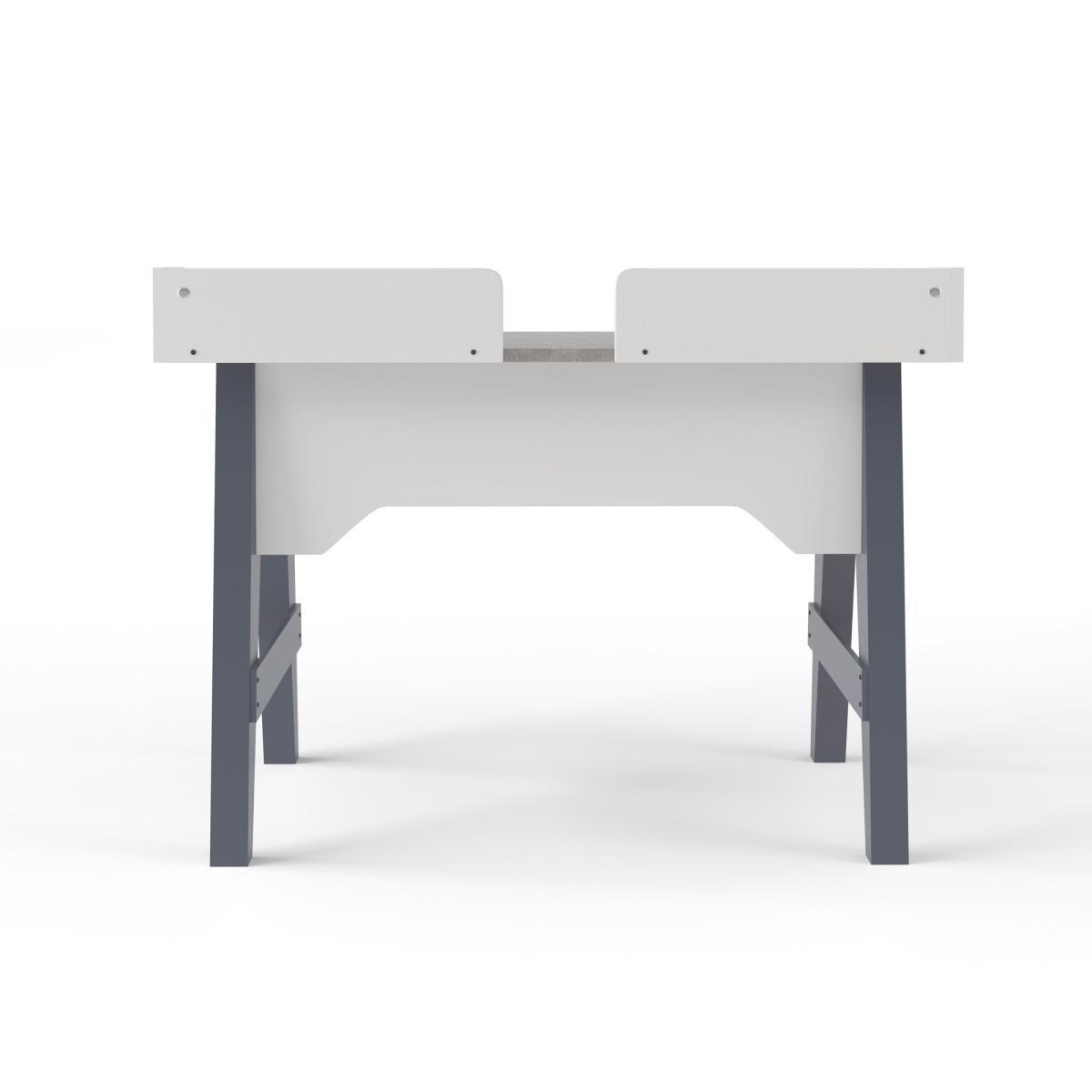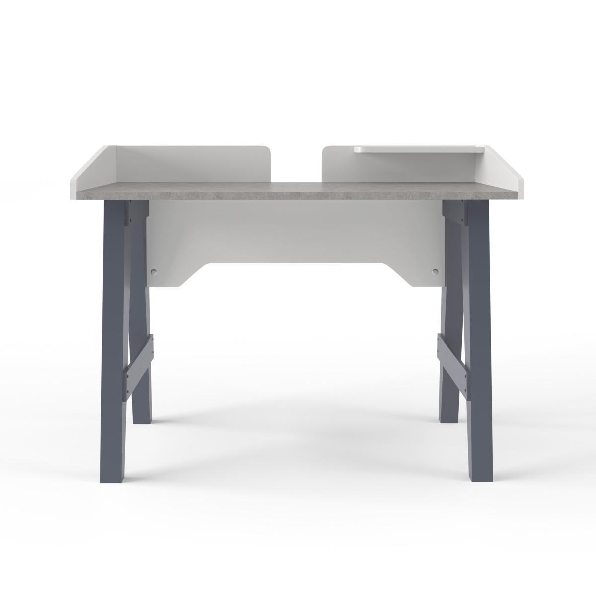 Stylish and sturdy, the modern Truro Desk features a stunning grey faux marble desktop, complemented by the rounded light grey edging. This contemporary desk is supported on sturdy chunky wood legs in an a-frame design, and also features a small raised shelf and a handy cutout in the backboard, perfect for helping with cable management.
