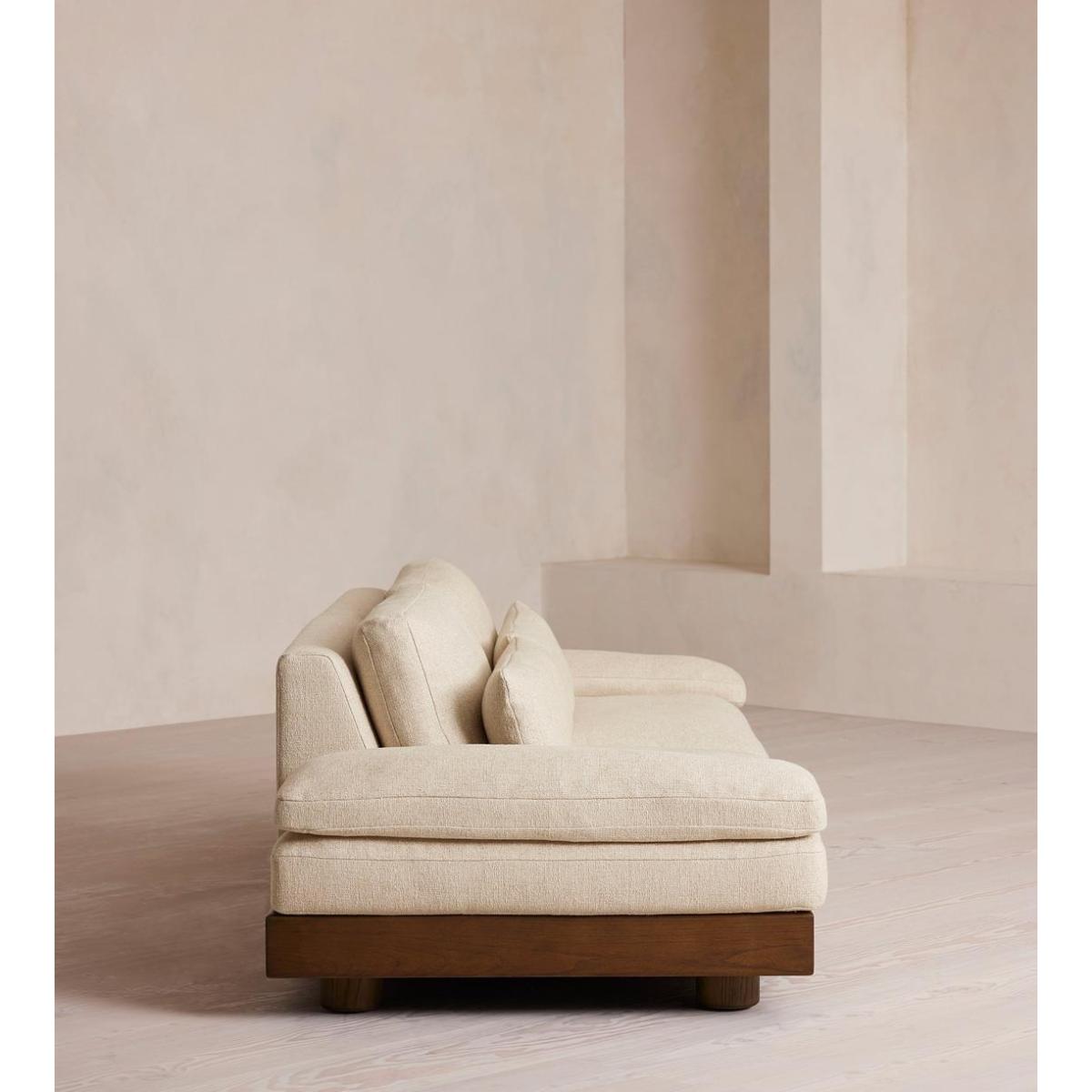I really like this sofa for its versatile and understated appeal. The textured linen offers a relaxed, tactile finish that works well in both modern and traditional interiors, adding warmth and character without feeling too formal. It’s ideal for open-plan living spaces or cosy corners, and its three-seater size makes it perfect for family rooms or entertaining. Styling-wise, pair it with neutral-toned cushions and a couple of colourful throws to add texture and interest. The sofa’s simple silhouette also lends itself to layering with varied accessories, such as a plush rug underneath or matching armchairs nearby, creating a welcoming yet streamlined look. Its neutral palette means it can seamlessly adapt to various colour schemes, making it a flexible choice for a range of interior styles.