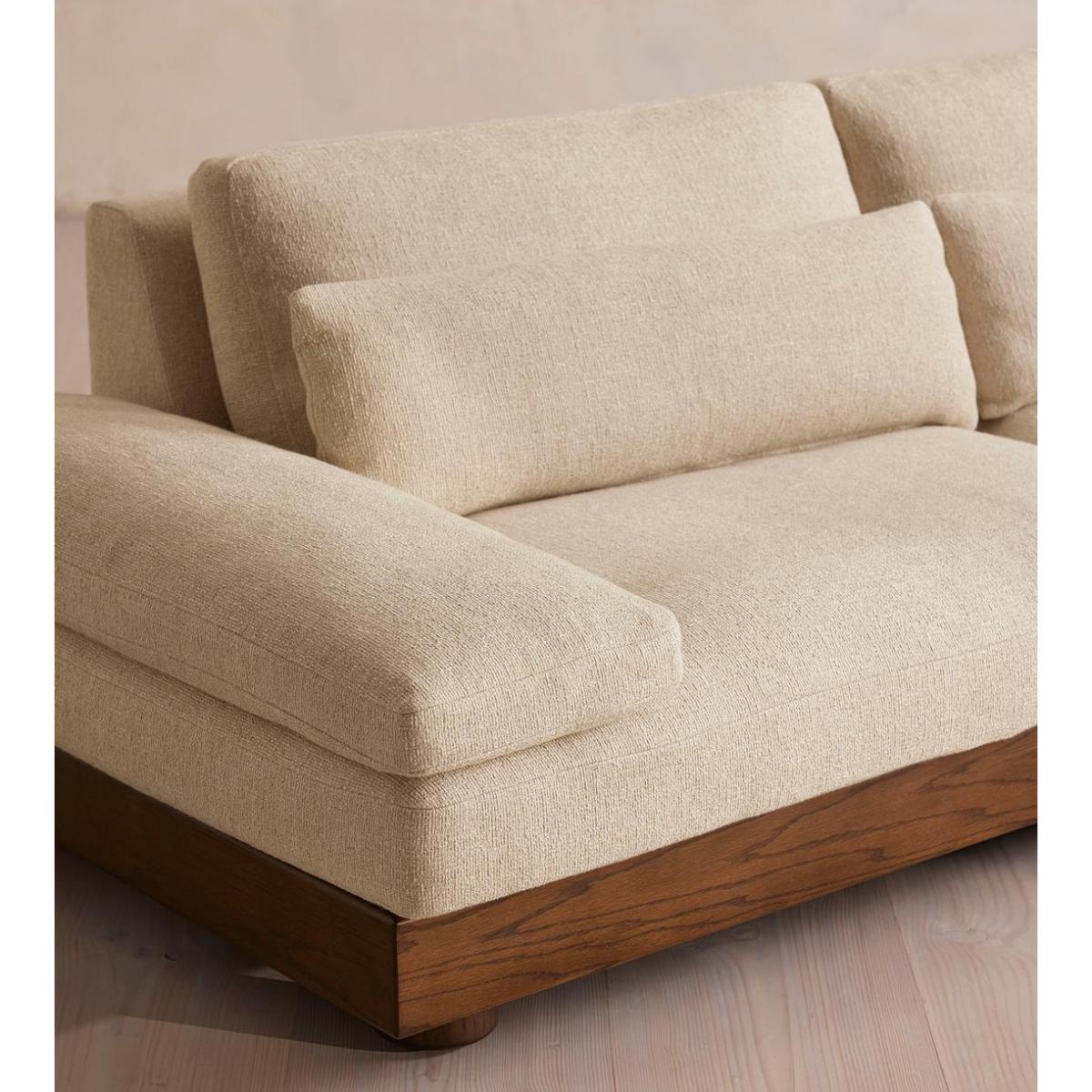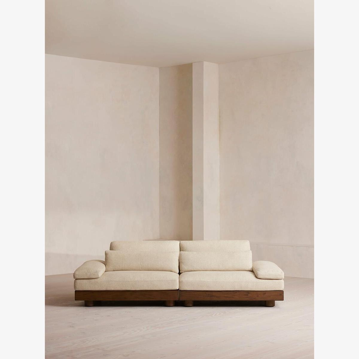 Our Truro modular sofa works as a two, three or four-seater style depending on the size of your individual living space. Upholstered in a Pierre Frey textured linen for subtle tactility, the low shape is made for laid-back moments, complete with comfy feather-wrapped cushions and a solid timber base. Modular sofa Upholstered in Pierre Frey textured linen Low shape Feather-wrapped cushions Solid timber base Inspired by Soho Roc House