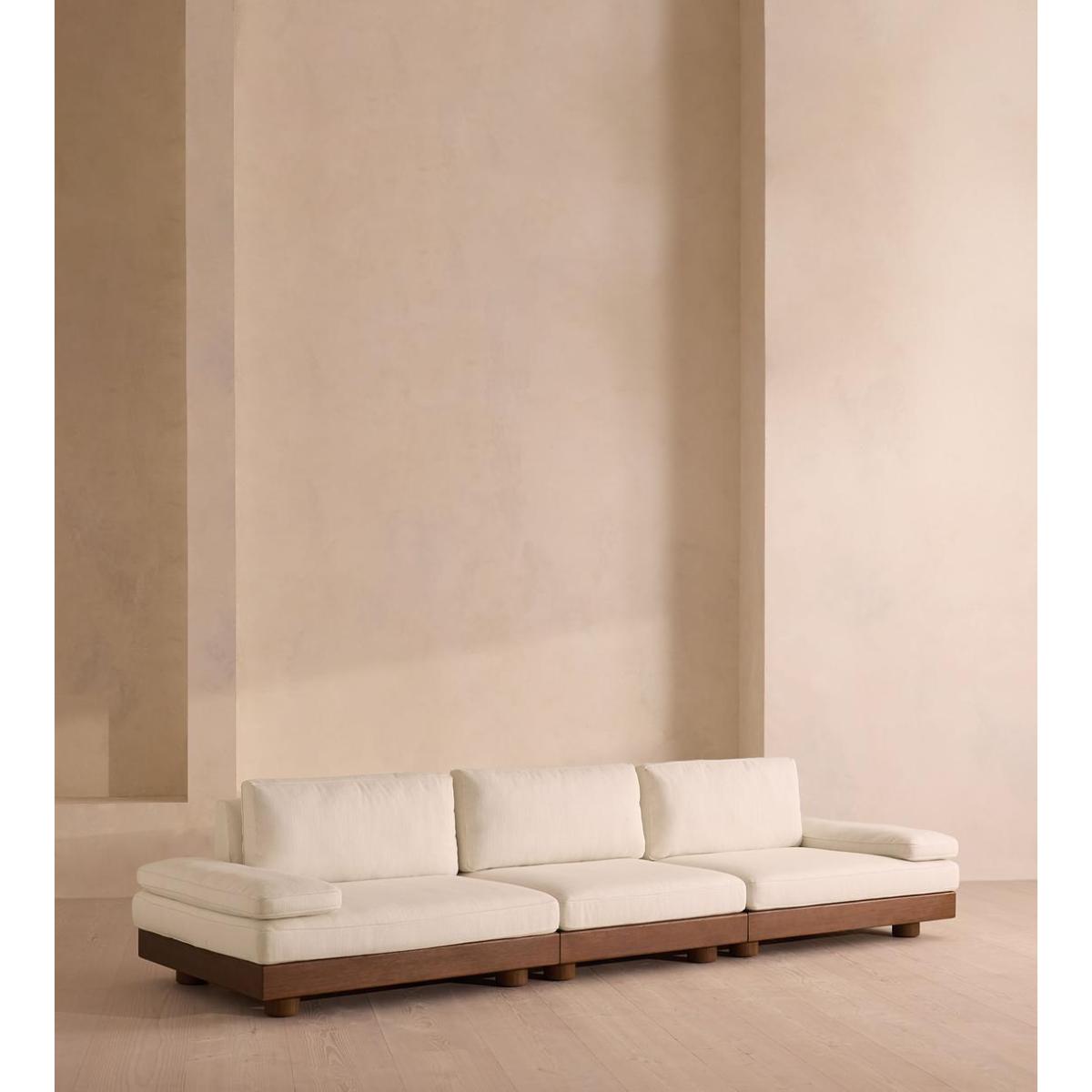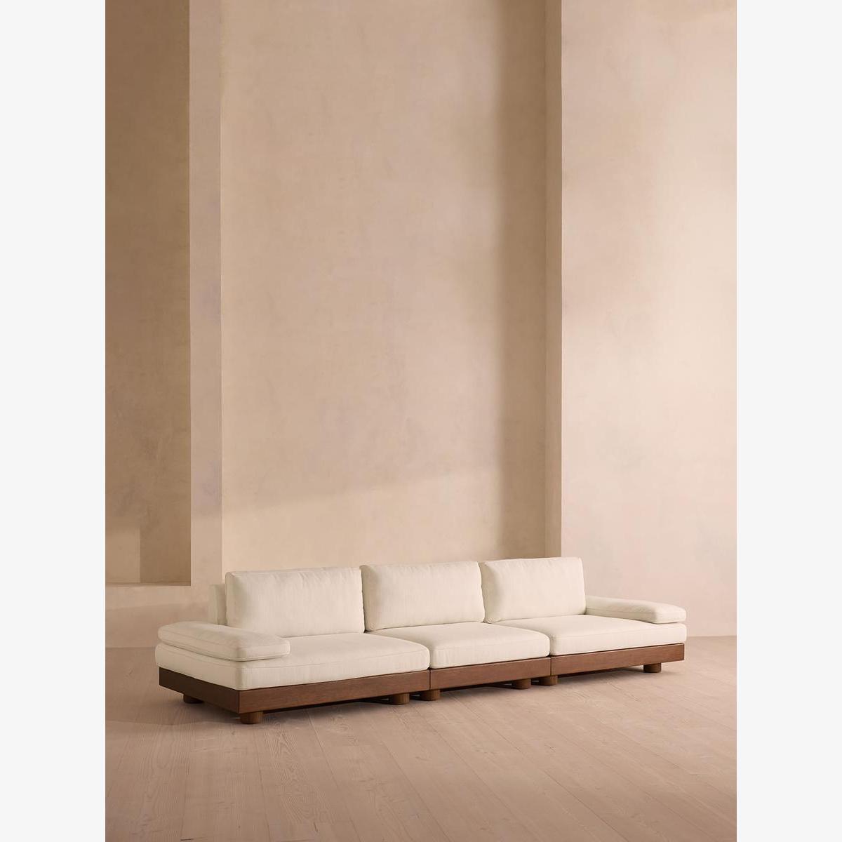 A modular style crafted from durable iroko wood, designed to adapt to the size and needs of your outdoor space. Now designed to be used outdoors, our Truro modular sofa can be adapted into a two, three or four-seater style to suit the size of your individual garden space. Upholstered in a woven fabric specially chosen to withstand the elements, its low shape creates a comfortable space for laid-back moments.