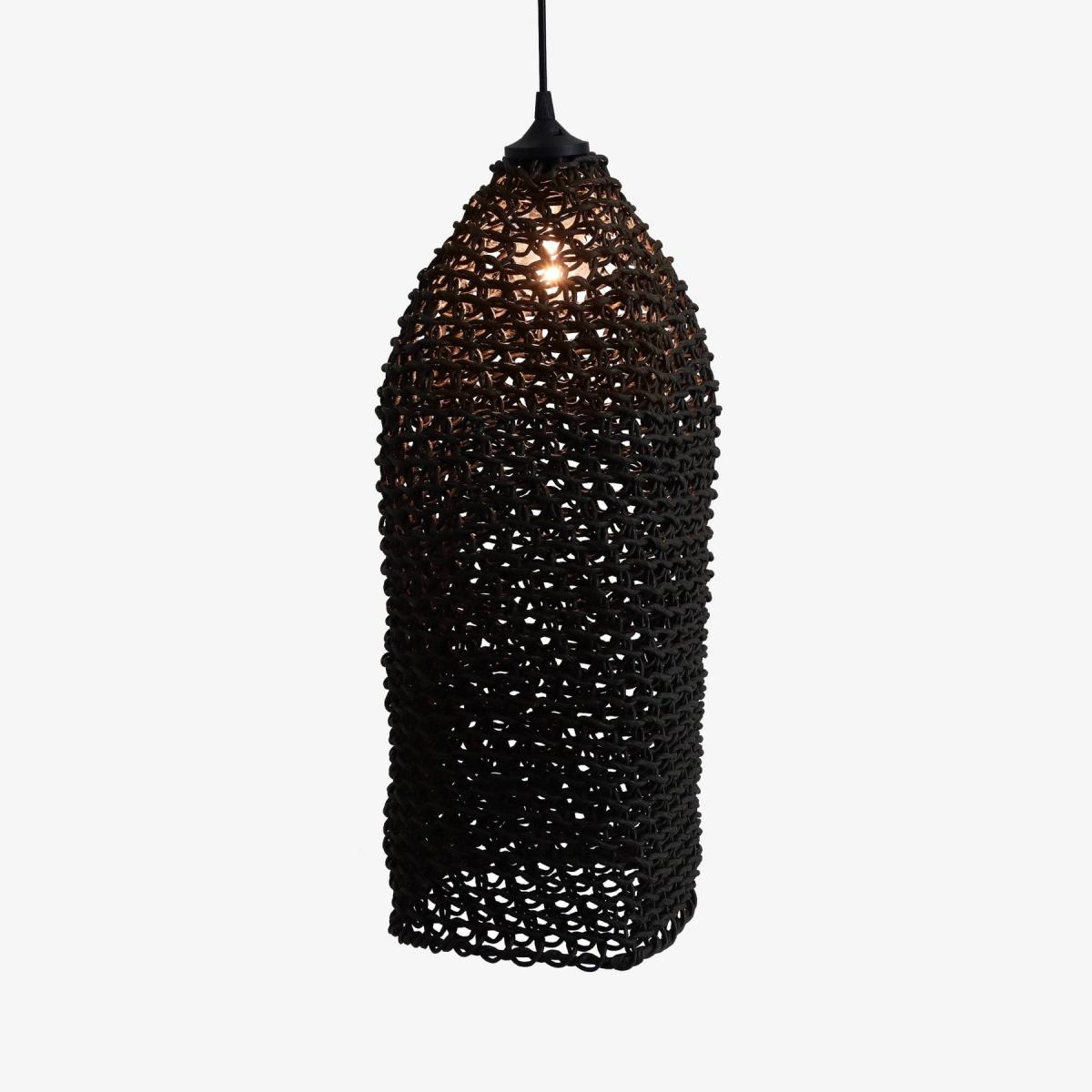 Our sculptural Truss ceiling shade, which is made from hand-woven black paper on a metal frame, is a convenient and affordable solution to refresh your decor. It can be easily attached to your current light fixture and is one of the most eye-catching lighting fixtures available, bringing a space to a whole new level. It may be hung alone or grouped with other shades from the Truss range for maximum impact.