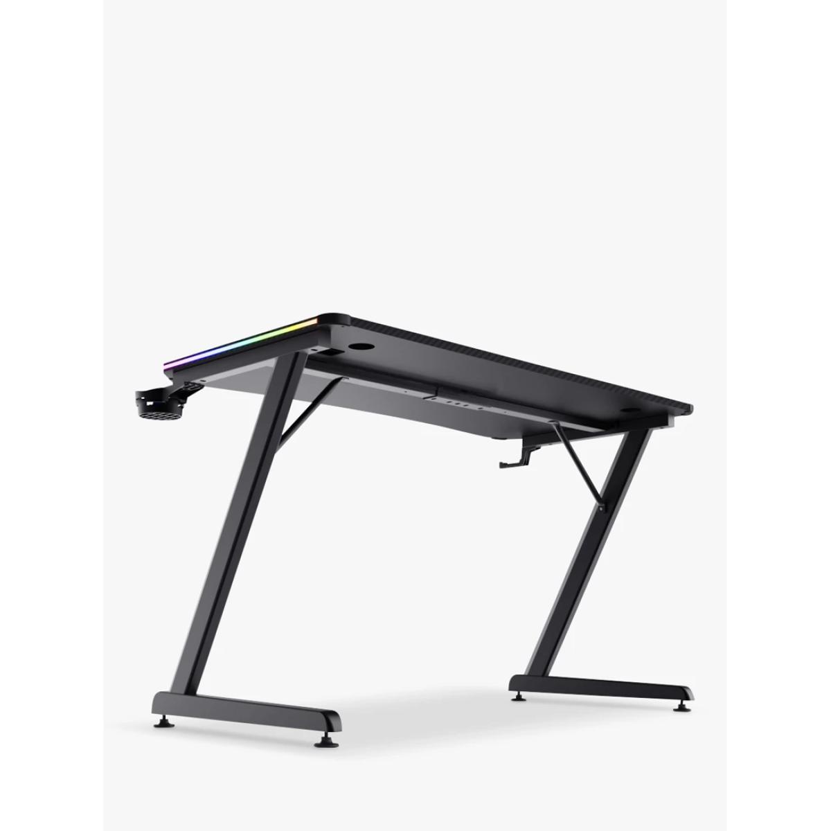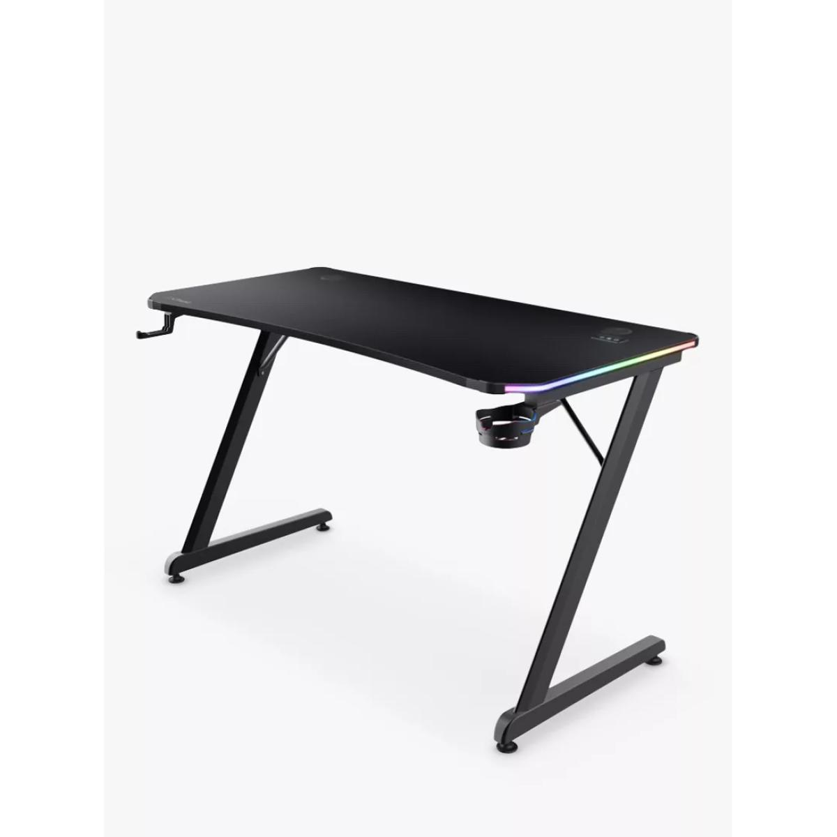 Trust know the facts: RGB just makes everything better. With edge-integrated RGB LED lighting, this desk is as cool as they come. And with ten different colour modes, you can adapt the lighting to whatever mood or game you’re playing. And its anti-scratch top layer with carbon look means it’ll stay looking rad no matter how often you use it. Awesome add-ons Every character has their secret skills, and the Luminus does too. With an attachable cup holder, headset hook and built-in cable management system, this desk keeps your accessories organised and within easy reach. A light touch One touch and you’re in control. The Luminus’s on-desk touch controls offer you the ability to easily switch between colour modes and speeds to add even more excitement to your gaming sessions. Plug in & play Trust have made it as easy as possible to enjoy the Luminus. USB-powered, you can directly connect it to your laptop, PC, or any USB wall charger or powerbank to get those lights (and your game!) on in no time at all.