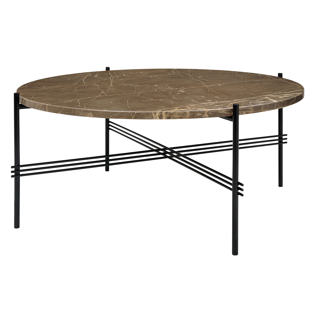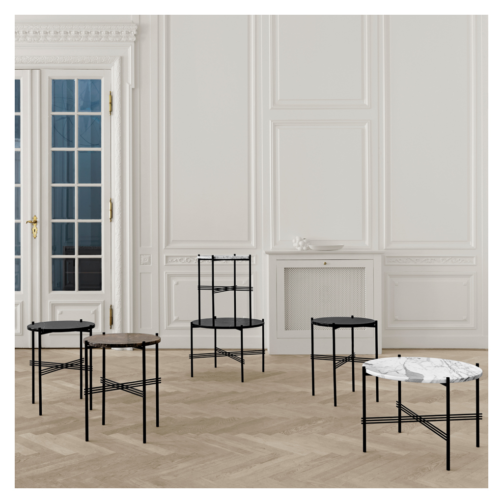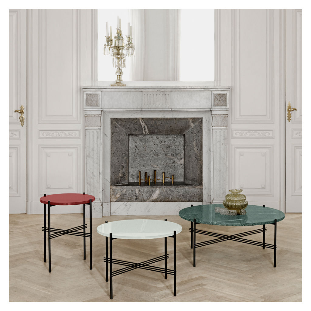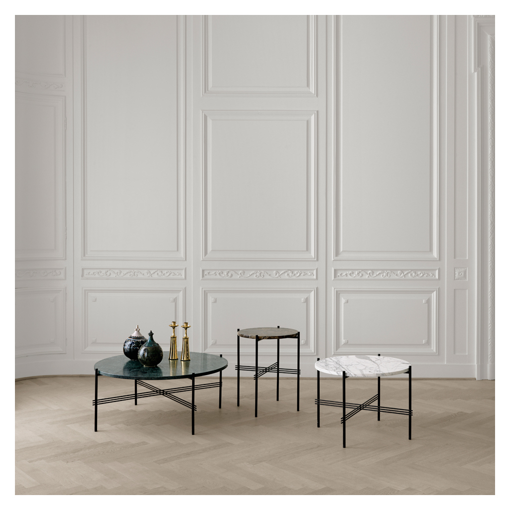 The creation of young design duo, Enrico Fratesi and Stine Gam, the large TS Coffee Table showcases a rich black powder-coated base, with the option of a selection of glass and marble top finishes and lends contemporary dimension to any space. Crafted with a choice of delicate glass or marble surfaces and contrasting brass legs with cross-strut detailing, the TS Coffee Table embodies GamFratesi's idea that their work is 'balancing between the traditional and surprising'. Created with classic materials paired with a modern, clean-lined aesthetic, GamFratesi has designed the TS family of tables with a sharp eye for detail and an uncomplicated approach. Intricately manufactured by Gubi, the TS Coffee Table in a selection of glass and marble tops is created to exact specifications to ensure it is finished in the highest quality.