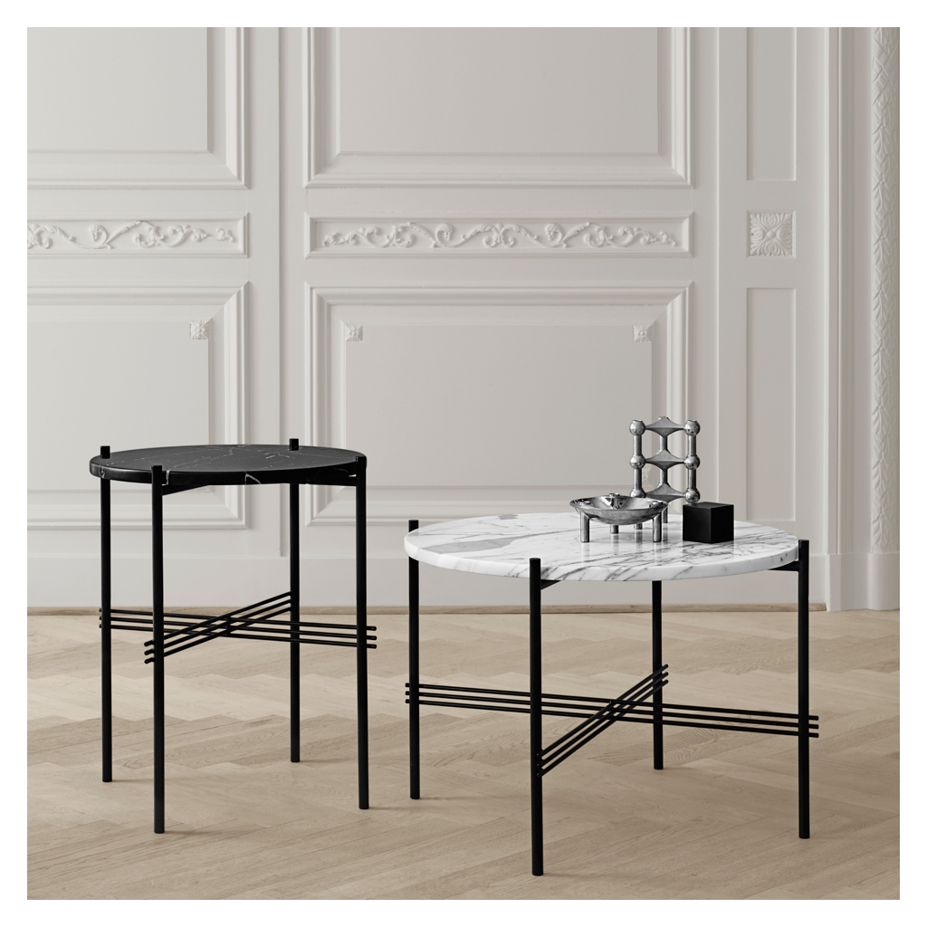 The creation of young design duo, Enrico Fratesi and Stine Gam, the medium TS Coffee Table showcases a rich black powder-coated base, with the option of a selection of glass and marble top finishes and lends contemporary dimension to any space. Crafted with a choice of delicate glass or marble surfaces and contrasting black legs with cross-strut detailing, the TS Coffee Table embodies GamFratesi’s idea that their work is ‘balancing between the traditional and surprising’. Created with classic materials paired with a modern, clean-lined aesthetic, GamFratesi has designed the TS family of tables with a sharp eye for detail and an uncomplicated approach. Intricately manufactured by Gubi, the TS Coffee Table in a selection of glass and marble tops is created to exact specifications to ensure it is finished in the highest quality.