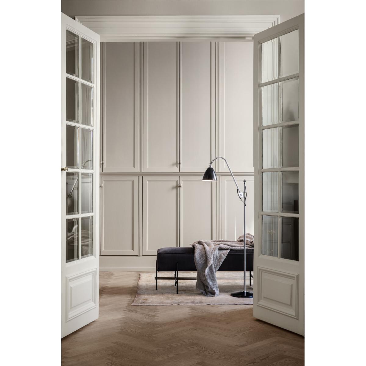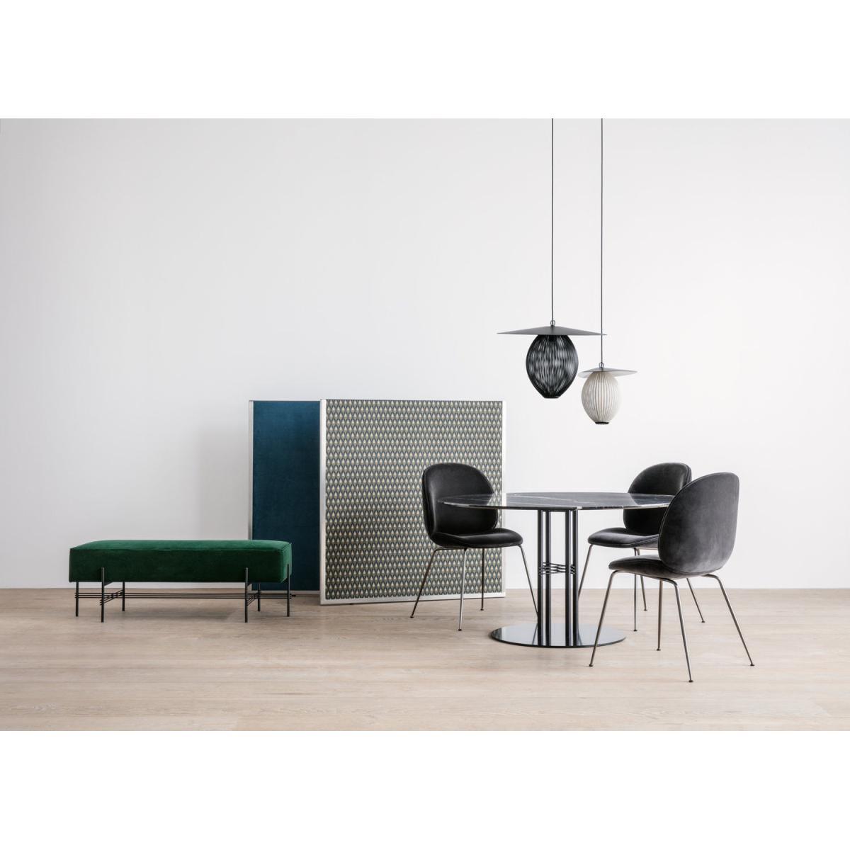 A glamorous, 1930s-inspired pouf, the TS collection (short for ‘The Standard’) was originally created to furnish the building of the same name located in Copenhagen. Built in 1937, this building is a perfect example of Art Deco architecture. This TS pouf has the feel of the boudoir. It is upholstered in beautiful 100% cotton velvet that is stylish and warm. The tubular base in lacquered metal features geometric and graphic lines. The modern lines of the base beautifully enhance the sophisticated, classic style of the seat. This pouf will bring a touch of irresistible retro glamour to a living room, entrance, bedroom or dressing room.