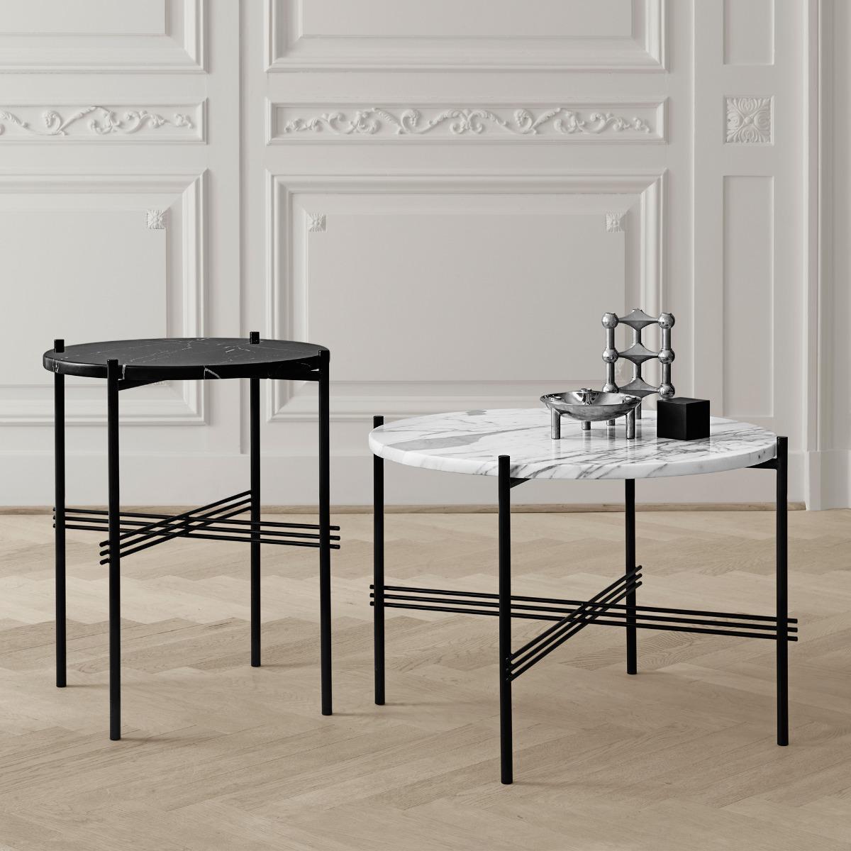 Yet another refined creation by design duo Gam Fratesi for GUBI, the round TS Coffee Table showcases a rich assortment of marble and glass surfaces, beautifully completing the TS family. A coveted addition to any home, the table contrasts its surfaces using lacquered legs with intricate detailing, embodying Gam. Fratesi’s idea that their work is "balancing between the traditional and surprising. ". Created with classic, durable materials paired with a modern, clean-lined aesthetic, Gam Fratesi has designed the TS collection with a sharp eye for detail and an uncomplicated approach. Founded in 2006 by architects Stine Gam and Enrico Fratesi, the award-winning Copenhagen-based design house takes its creative drive from a fusion of tradition and renewal, drawing on both designers' experiences of Danish and Italian craft traditions.