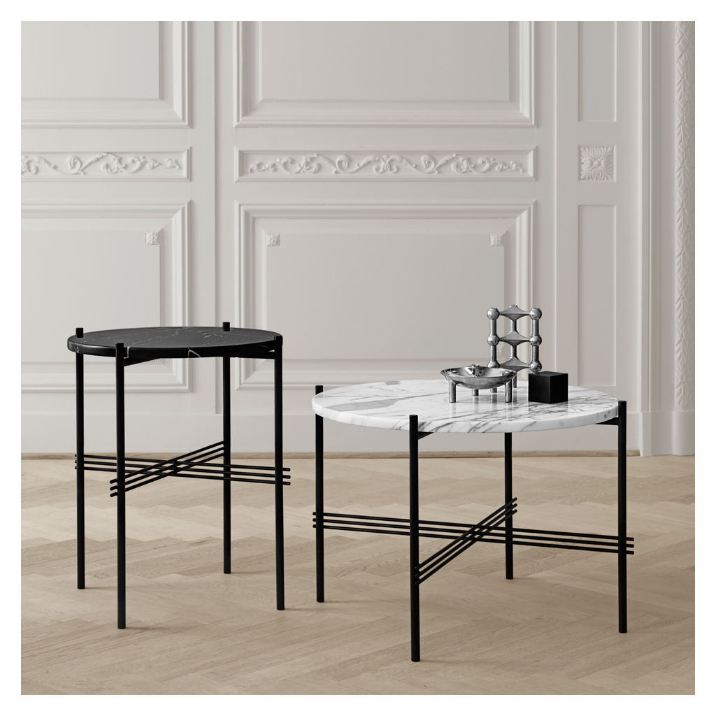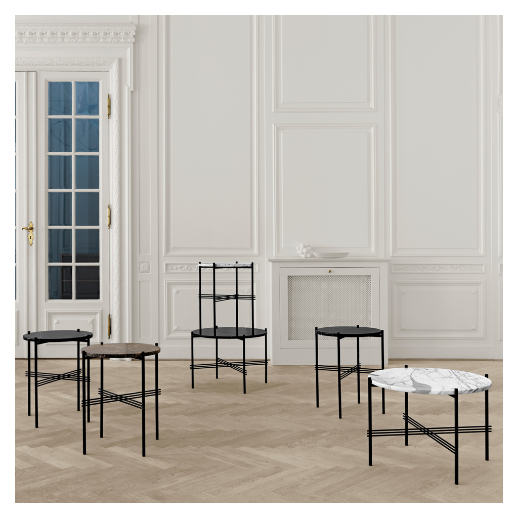 The creation of young design duo, Enrico Fratesi and Stine Gam, the small TS Side Table showcases a rich black powder-coated base, with the option of a selection of glass and marble top finishes and lends contemporary dimension to any space. Crafted with a choice of delicate glass or marble surfaces and contrasting black legs with cross-strut detailing, the TS Side Table embodies GamFratesi’s idea that their work is ‘balancing between the traditional and surprising’. Created with classic materials paired with a modern, clean-lined aesthetic, GamFratesi has designed the TS family of tables with a sharp eye for detail and an uncomplicated approach. Intricately manufactured by Gubi, the TS Side Table in a selection of glass and marble tops is created to exact specifications to ensure it is finished in the highest quality.