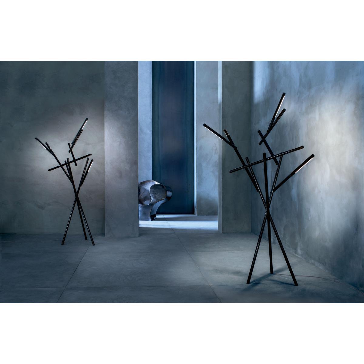 A lamp which boasts a decidedly sculptural presence, which stands out in space with a strong totem-like appeal. Tuareg, the new project by Ferruccio Laviani for Foscarini, consists of simple and essential tubular elements which are directed differently to create a structure with a personality resembling that of an artistic installation. The reference to the world of contemporary art stands out among Laviani's sources of inspiration, ranging from the suggestion of works of land art to the architectures built at the hands of men, and it is combined with the deeply industrial soul of the lamp.