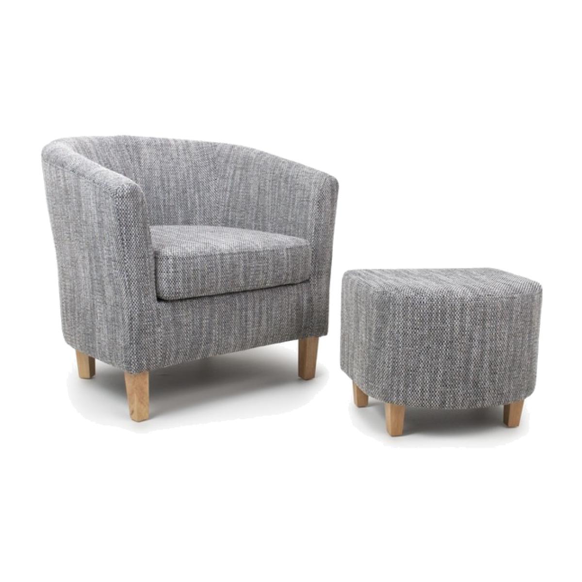 Tub Tweed Grey Chair and Stool Set - Tweed grey