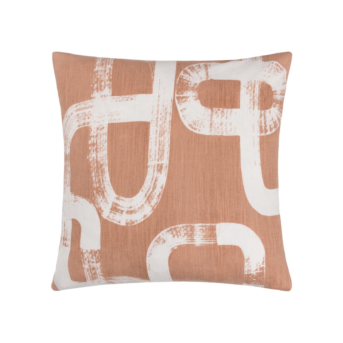 Relax in style with the modern, minimalist-inspired Tuba cushion. Featuring an abstract printed design of arching brushstrokes, set on a contrasting, earthy clay pink background inspired by setting plaster tones This unique piece will sit comfortably within any contemporary interior.