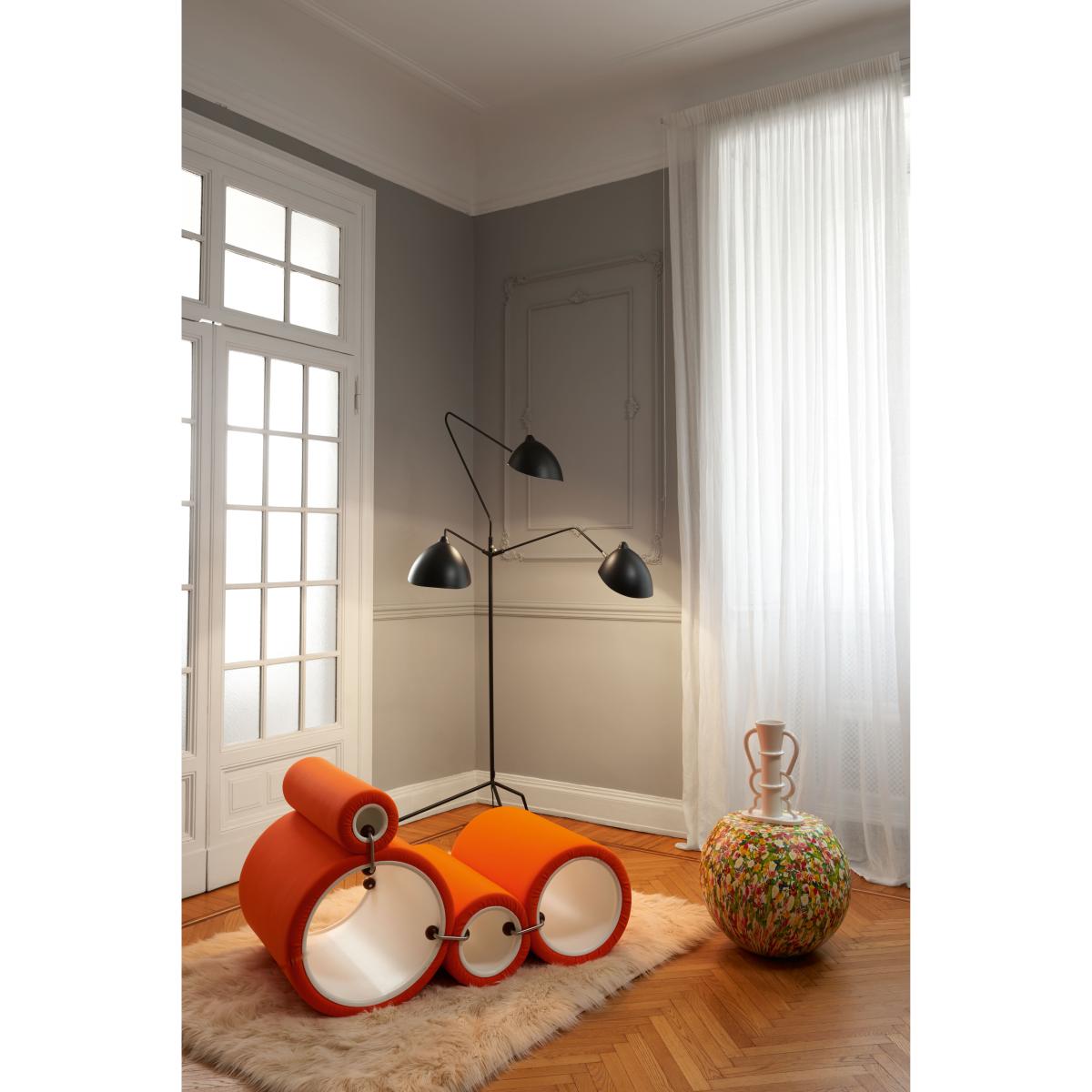 I love this armchair for its bold, playful aesthetic and functional design. Its bright orange textile instantly adds a pop of colour and a modern touch to any interior, making it ideal for contemporary living spaces or eclectic schemes. The adjustable feature is a real practical bonus, allowing you to customise comfort and versatility, whether for lounging or reading. Style-wise, it pairs well with minimalist decor to create a focal point, or can complement a retro-inspired setting with its nod to Joe Colombo’s innovative design. For styling tips, consider pairing it with neutral or contrasting cushions, or situate it alongside sleek, modern furniture pieces to make its distinctive shape stand out. It’s ideal for an informal lounge area or as a statement piece in a creative workspace.