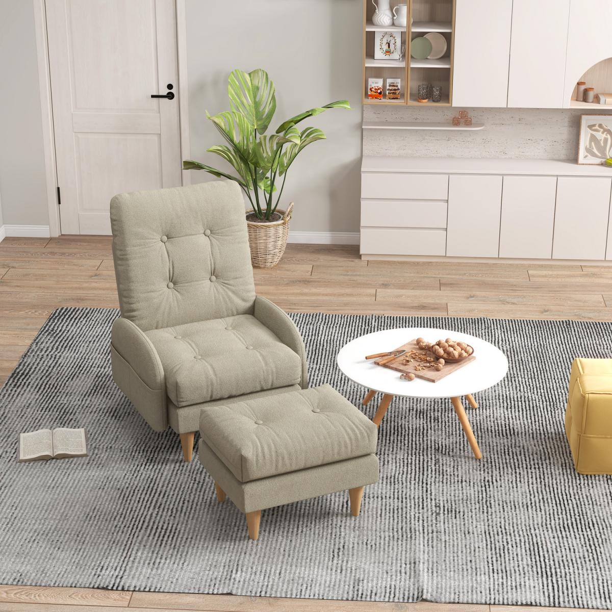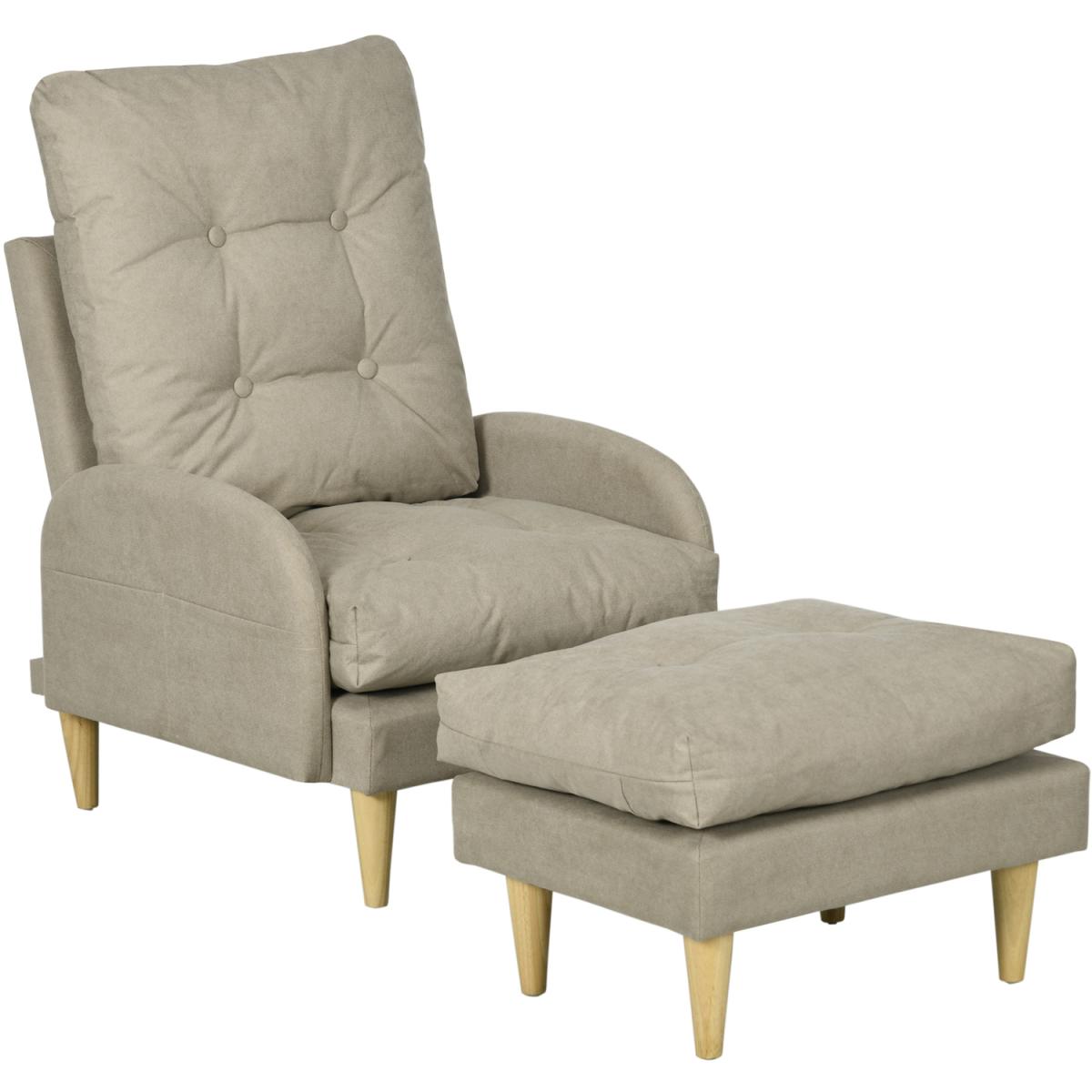 Tufted Armchair with Footstool Adjustable Back - Beige