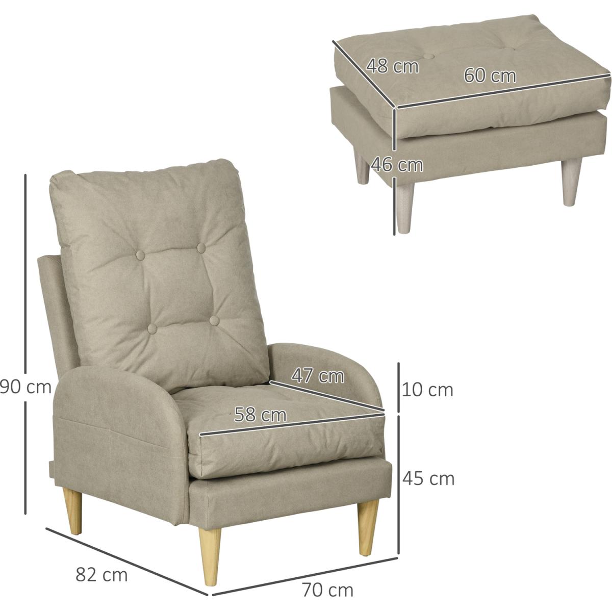 Bring plenty of character and colour into your living space - say hello to this HOMCOM recliner chair and ottoman set. The chair has a three-position back (110 degree 135 degree 170 degree) so you can lie back to a position of your choice. Both the chair and ottoman are thickly padded for comfort, with wooden legs to provide plenty of balance. Living room armchair is complete with four pockets on the chair for convenient storage.