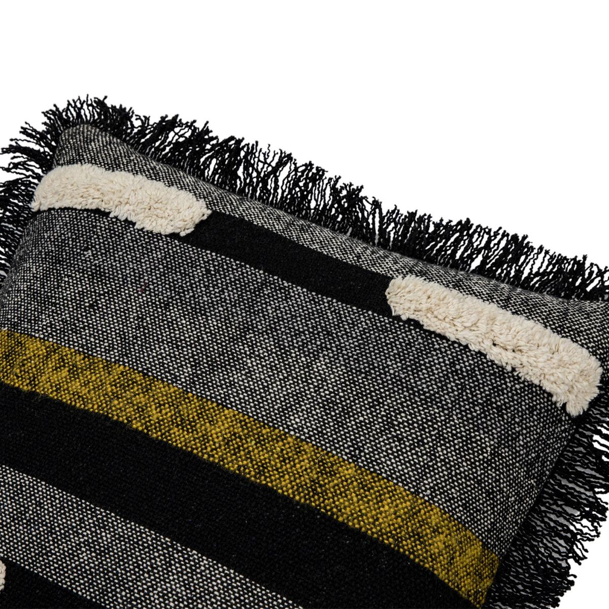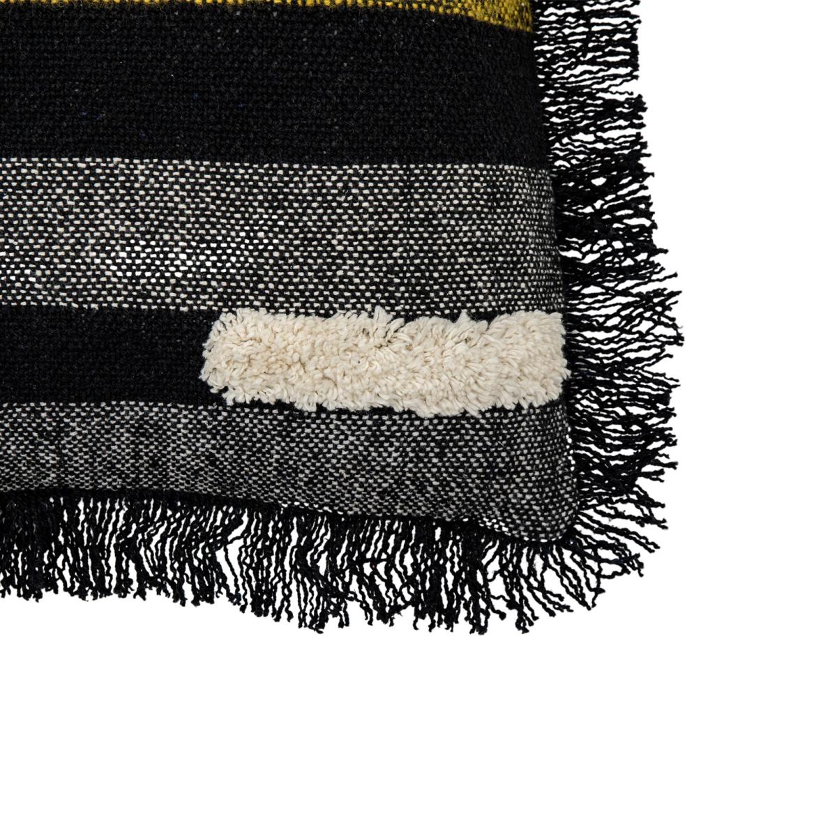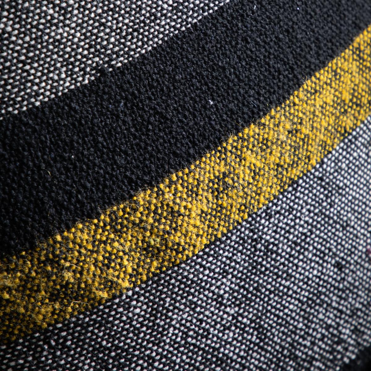 I love this one for adding texture and visual interest to a sofa or armchair. Its tufted design with contrasting stripes pairs well in both contemporary and eclectic interiors, making it versatile across various styles. It works particularly well in neutral or muted colour palettes, providing a pop of pattern without overwhelming the space. Practical styling tips include mixing it with smooth-textured cushions to balance the tactile feel or layering it against plain cushions for a layered, cosy look. It’s also a great choice for making a seating area feel more inviting and comfy in living rooms or even bedrooms.