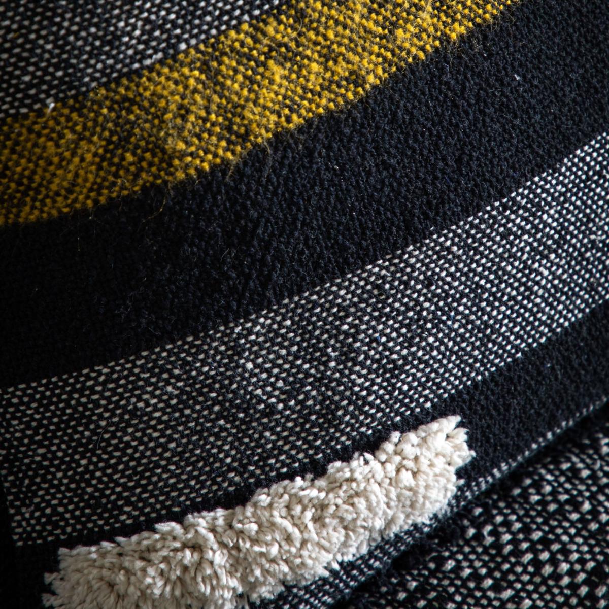 This cushion strikes a great balance between contemporary style and cosy texture, making it versatile for various interior schemes. I love the mix of black and grey with the fringe detail-ideal for adding subtle pattern and tactile interest without overwhelming a space. It works particularly well in modern or minimalist living rooms, but can also bring a touch of sophistication to boho or eclectic interiors when layered with other textured pieces. For styling, try pairing it with neutral-toned throws or other cushions in complementary fabrics to create a welcoming, pulled-together look. It’s practical yet stylish, perfect for adding depth and personality to sofas or armchairs.
