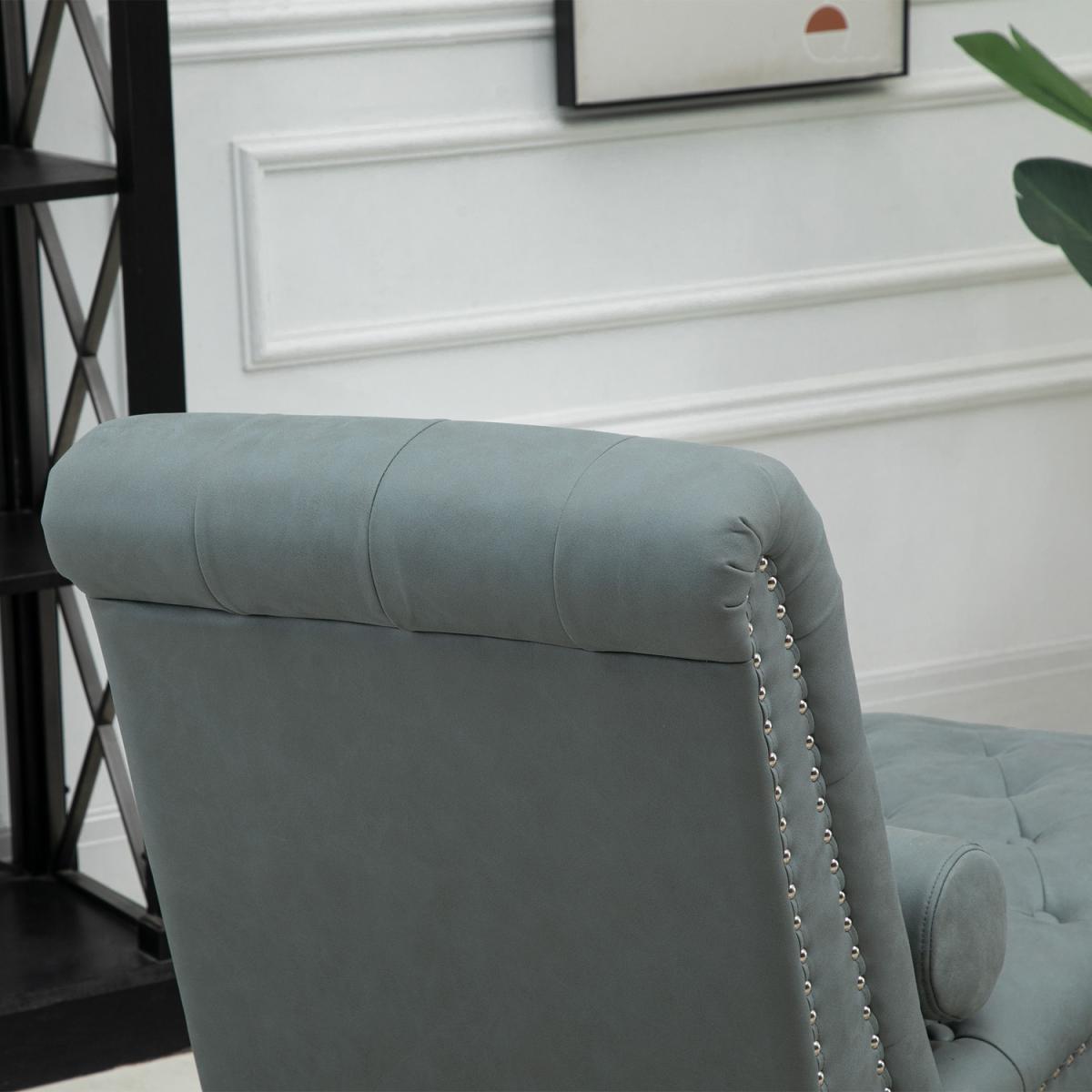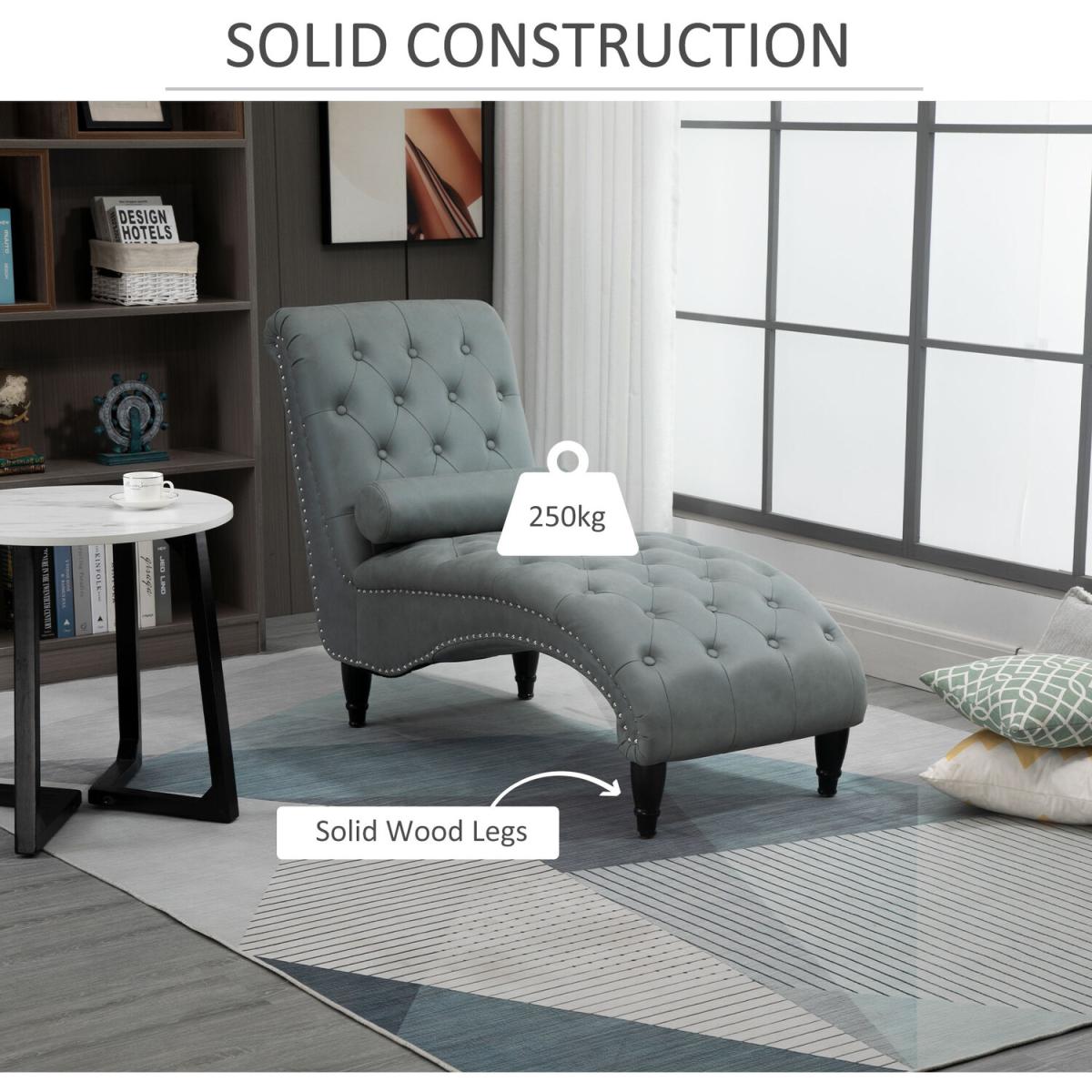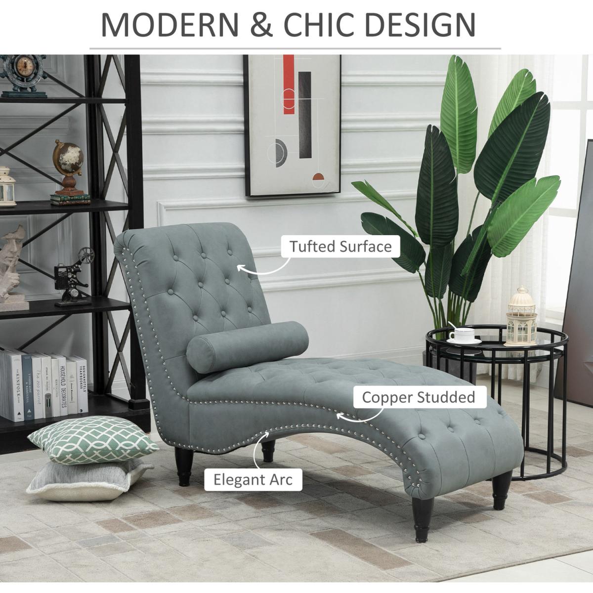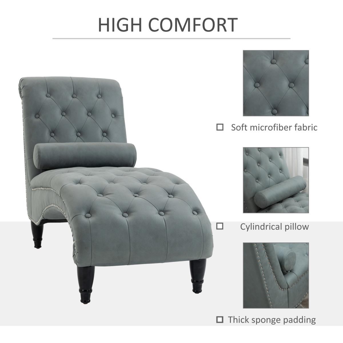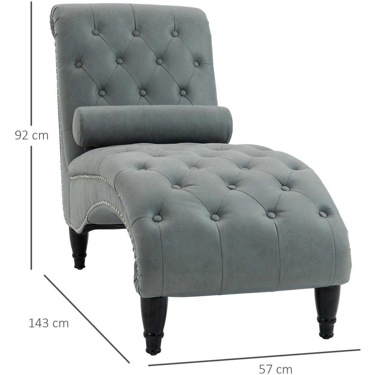 Enjoy relaxation with this sophisticated chaise lounge from HOMCOM. A grey handpicked microfiber surface with a tufted finish is stylish, whilst the thick sponge and lumbar pillow is extremely comfortable. It has a long open design, resting on four solid wood legs, giving you complete support whilst you sit back, stretch and rest.