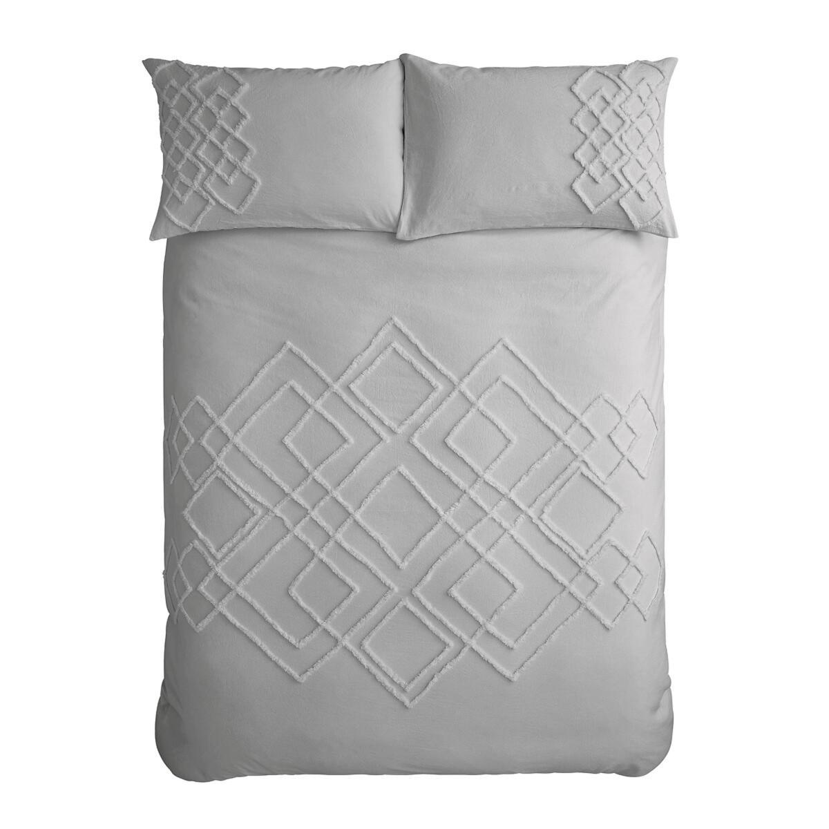 This inspired collection of eclectic designs are a fusion of influences from across the world with a modern interpretation of artisan motifs and timeless textures. Influenced by North African decorative tufting techniques, reimagined into neutral tones this soft touch pure Cotton bedlinen, with intricate diamond detailing adds both texture and comfort to your room. Crafted from 100% Cotton. Machine Wash at 40 Degrees. Single Duvet Set - 135x200cm + 1 50x75cm Pillowcase, Double Duvet Set- 200x200cm + 2 50x70cm Pillowcases, King Duvet Set - 220x230cm + 2 50x75cm Pillowcases and Super King Set - 220x260 +2 50x75cm Pillowcases. This product will be dispatched by one of our trusted suppliers. You’ll be contacted by their selected courier about your delivery.