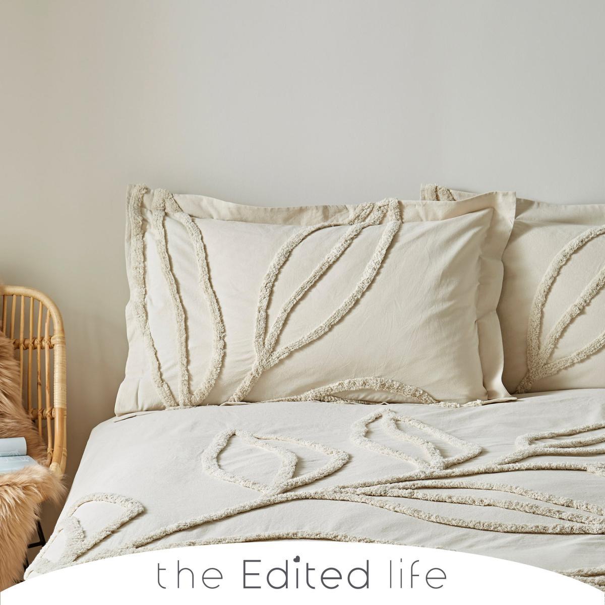 The Edited Life- Tufted Leaf Oxford Pillowcase. Boasting a tufted leaf design, this oxford pillowcase is ideal for adding a luxurious and elegant feel to your bedding. Beautifully crafted from 100% organic cotton, this pillowcase is soft, durable, and machine washable. Matching bedding and cushions are also available. Live well. Mean well. Be well. Many of us want to live simpler lives, to reduce our impact on the environment, and improve our wellbeing. As we become more aware of our surroundings and understand how our choices contribute to the world around us, more people are choosing to consume less and curate more. The Edited Life introduces a new era of thoughtfulness in the home, with an understated collection of pieces chosen for their simple beauty, quality craftsmanship and innate usefulness that will last beyond any trend. Having it all is no longer the goal; having enough, and it being just right, is. This collection is verified by OEKO-TEX® and independently tested for harmful substances as well as manufactured using sustainable processes under socially responsible working conditions. MADE IN GREEN by OEKO-TEX® is a unique product label to trace the countries and production facilities - search the product label for more information.