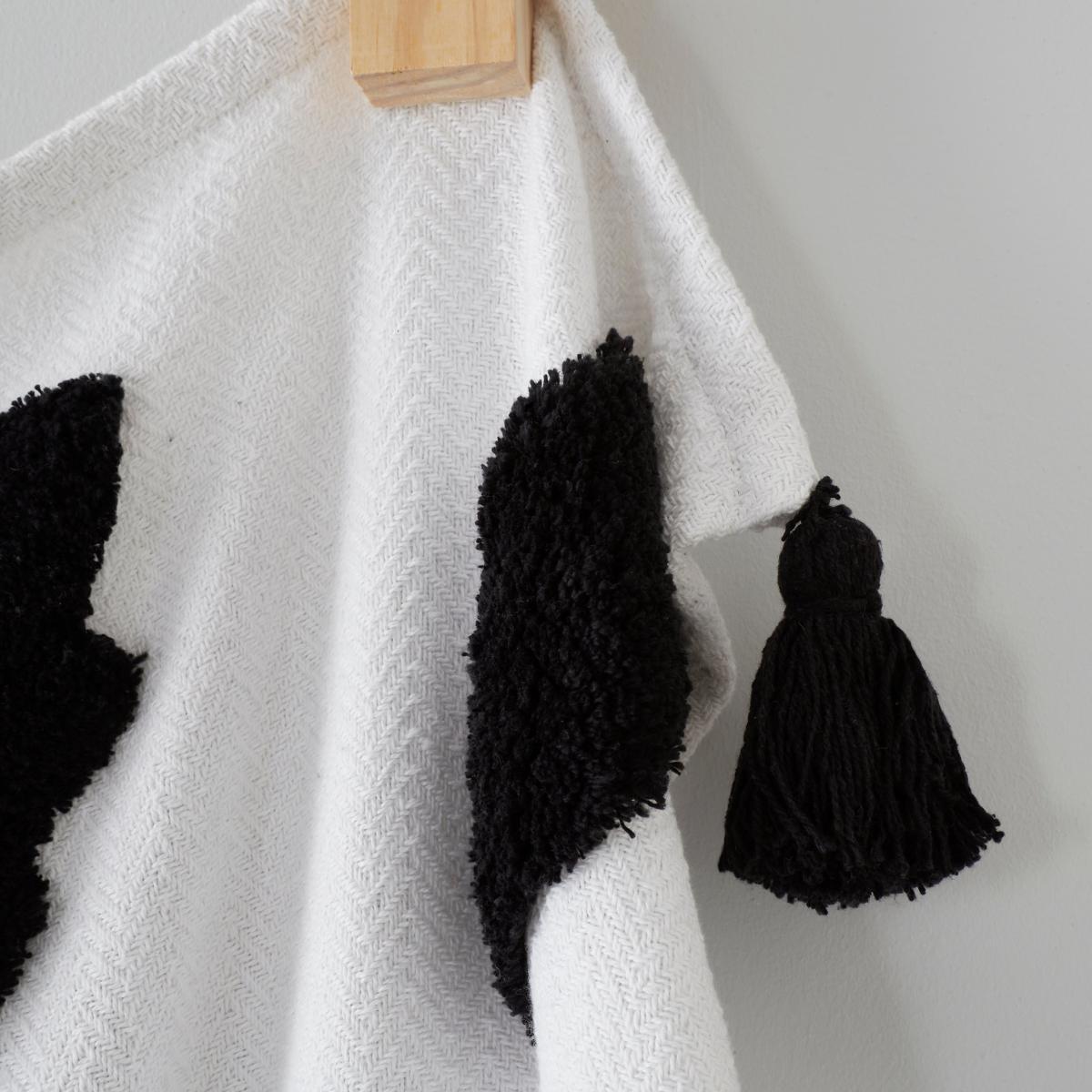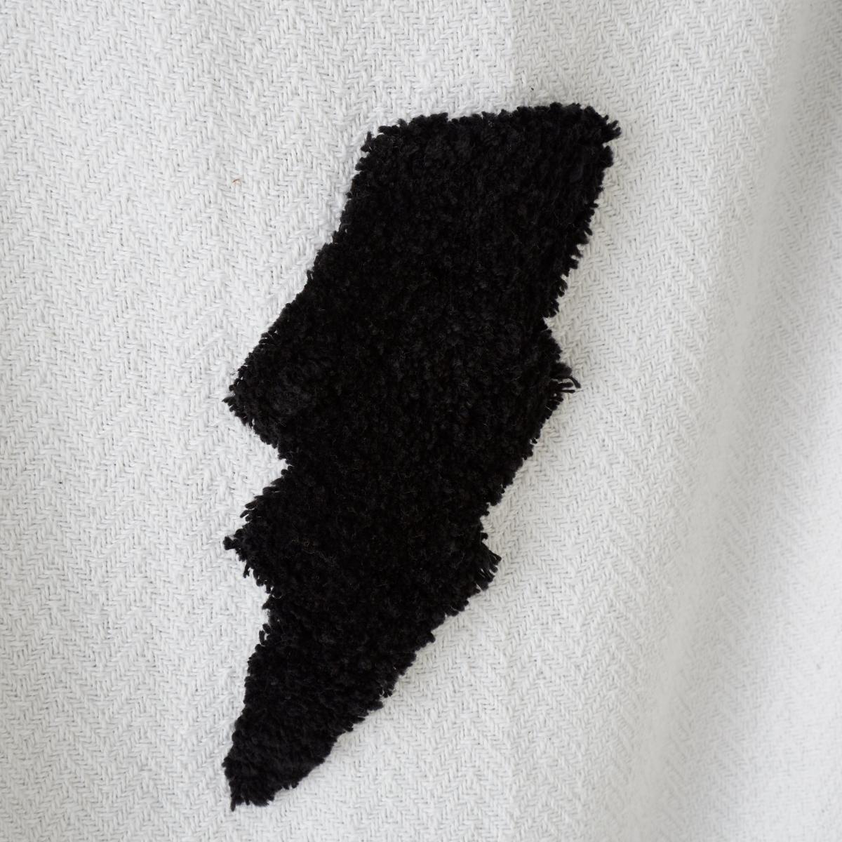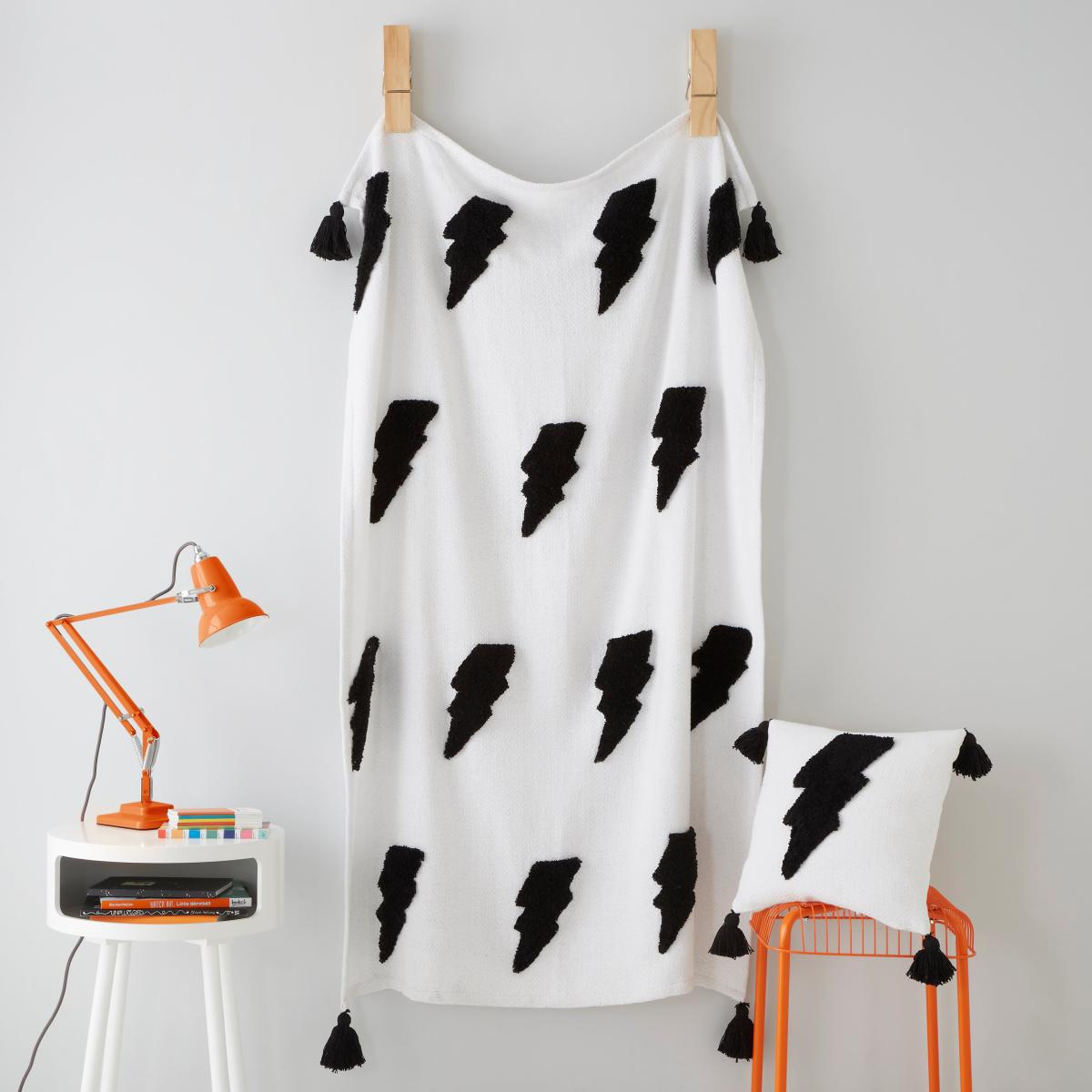 Boasting a beautiful tufted black lightning design, this throw is perfect for adding a 'striking' design into your room. A 100% cotton composition has created a textured base fabric. Finished with a tassel on each corner, this throw is hand washable only. A coordinating cushion is also available.