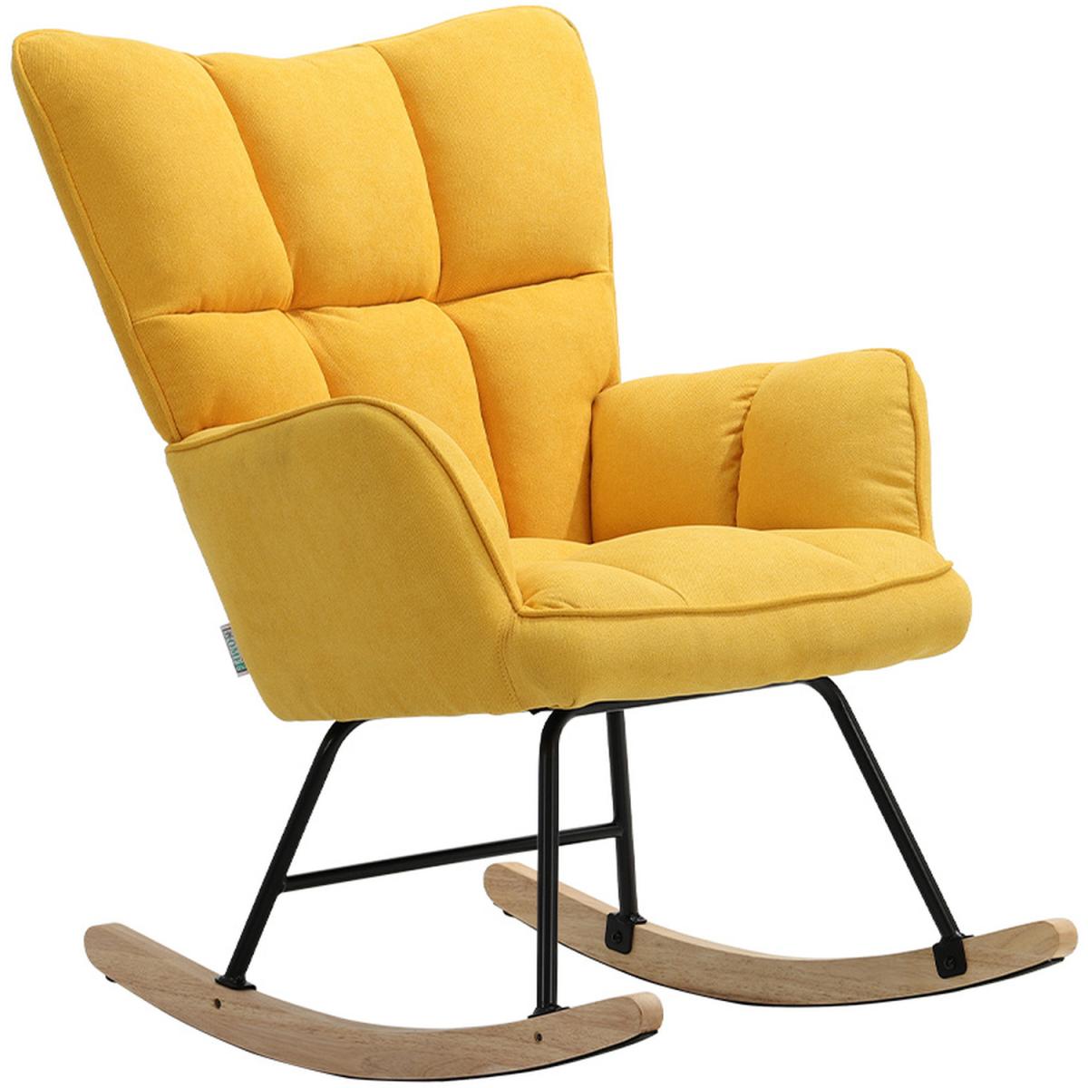 Tufted Linen Upholstered Rocking Chair - Yellow