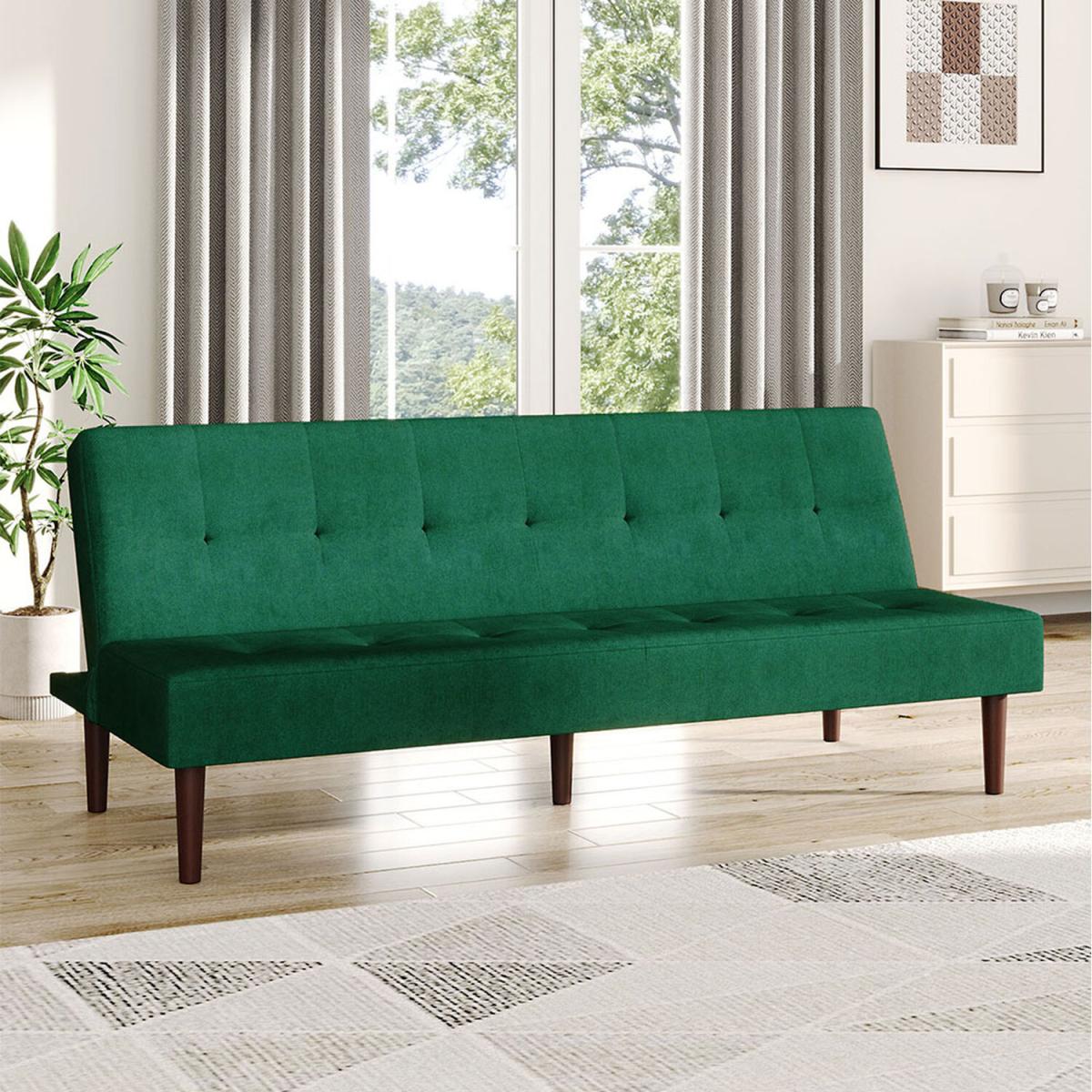 Experience the perfect blend of comfort and functionality with this convertible sofa bed. Ideal for daily use, it provides the cozy feel of a sofa while also offering an extra sleeping option for guests or a quick nap. Upholstered in soft tufted terry cloth, it offers a soft touch and excellent breathability, ensuring a comfortable seating experience with its padded sponge filling. Supported by five sturdy rubber wood legs, the sofa bed is stable and robust. The convenient clic-clac mechanism allows you to effortlessly adjust the backrest to your preferred angle, whether you're chatting with family and friends or relaxing to watch your favorite movie. With its durable solid wood construction and stylish tufted design, this sofa bed is built to last, making it a practical choice for any home.