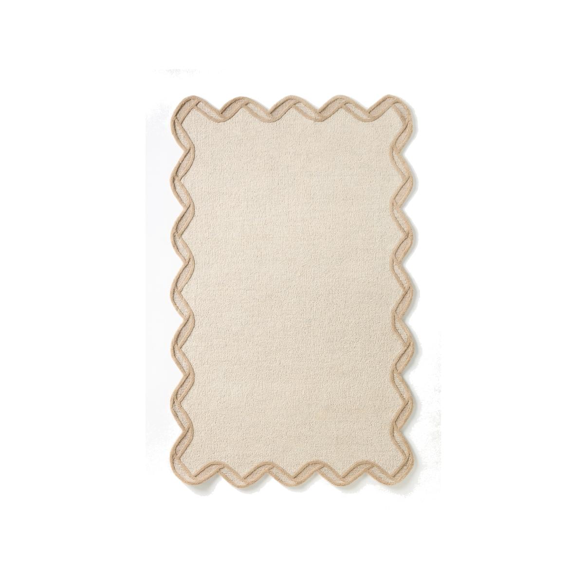 This plush tufted rug features a scalloped border trim, adding an understated yet playful element to your home. * Tufted 100% wool * Due to the hand-tufted nature of this item, expect slight variation in the appearance of each unique piece * Using a tufting tool, yarn is passed through a frame-stitched fabric backing on which a pattern has been drawn * Tufted rugs are known for their thicker pile, offering a soft and luxurious feel underfoot * Rug pad recommended to prevent slippage and protect your floor * Gently blot spills immediately with a clean, white cloth. Avoid soap and cleaning products, as they could damage or fade the rug * Professionally clean for best results * Imported