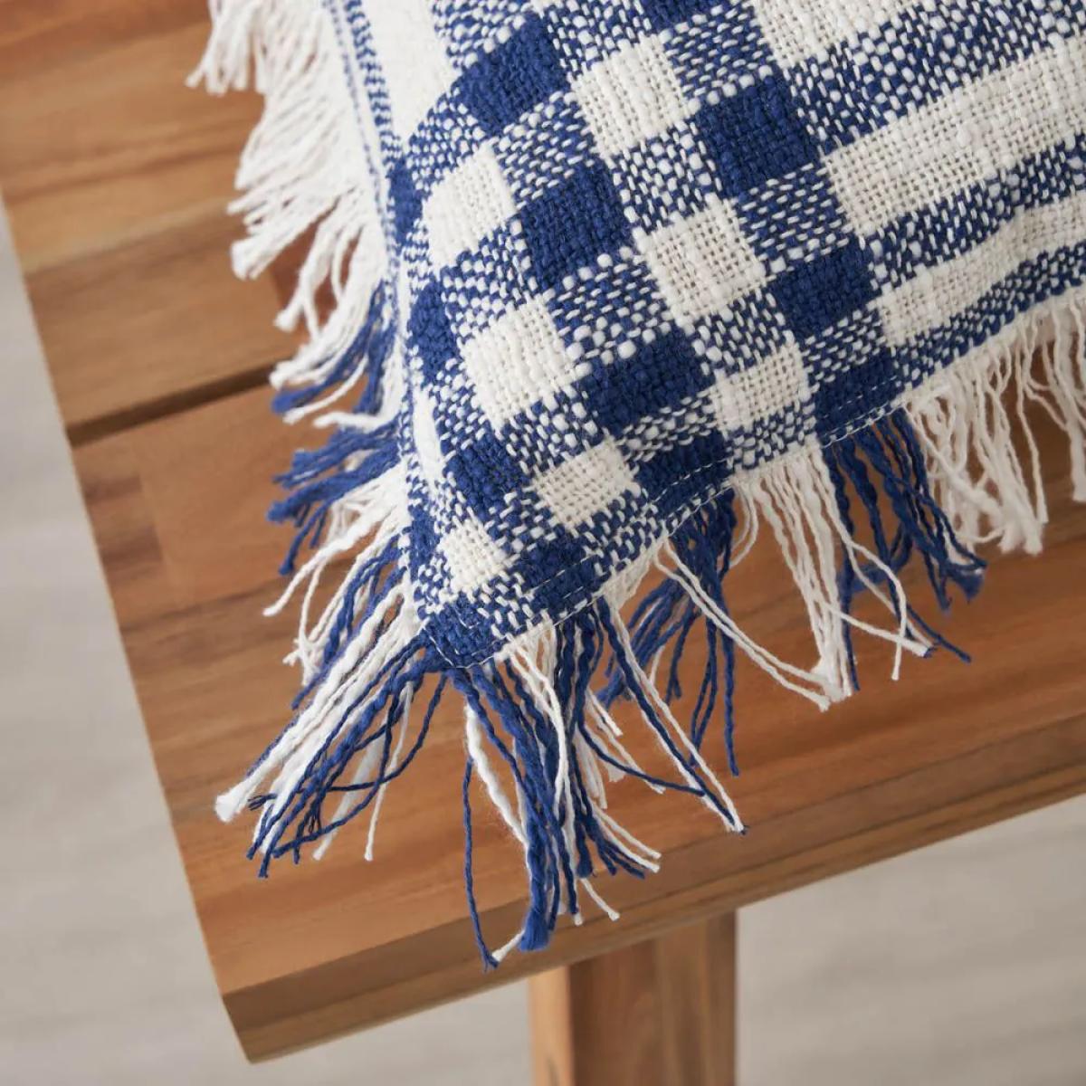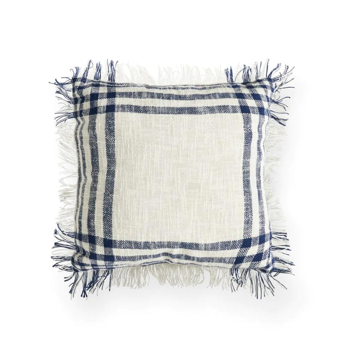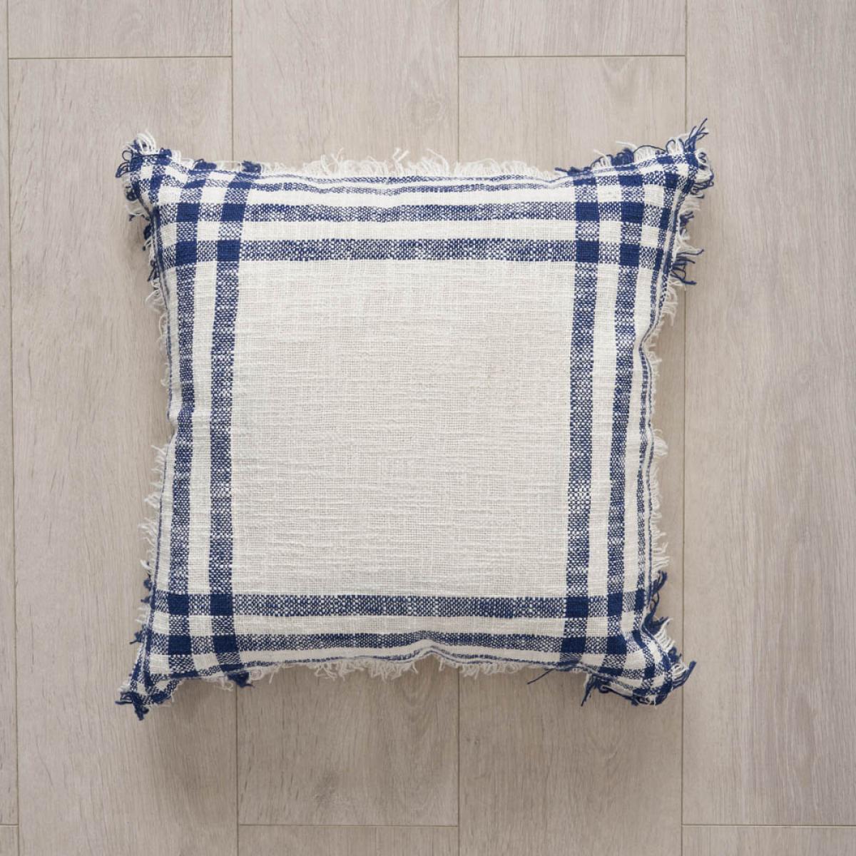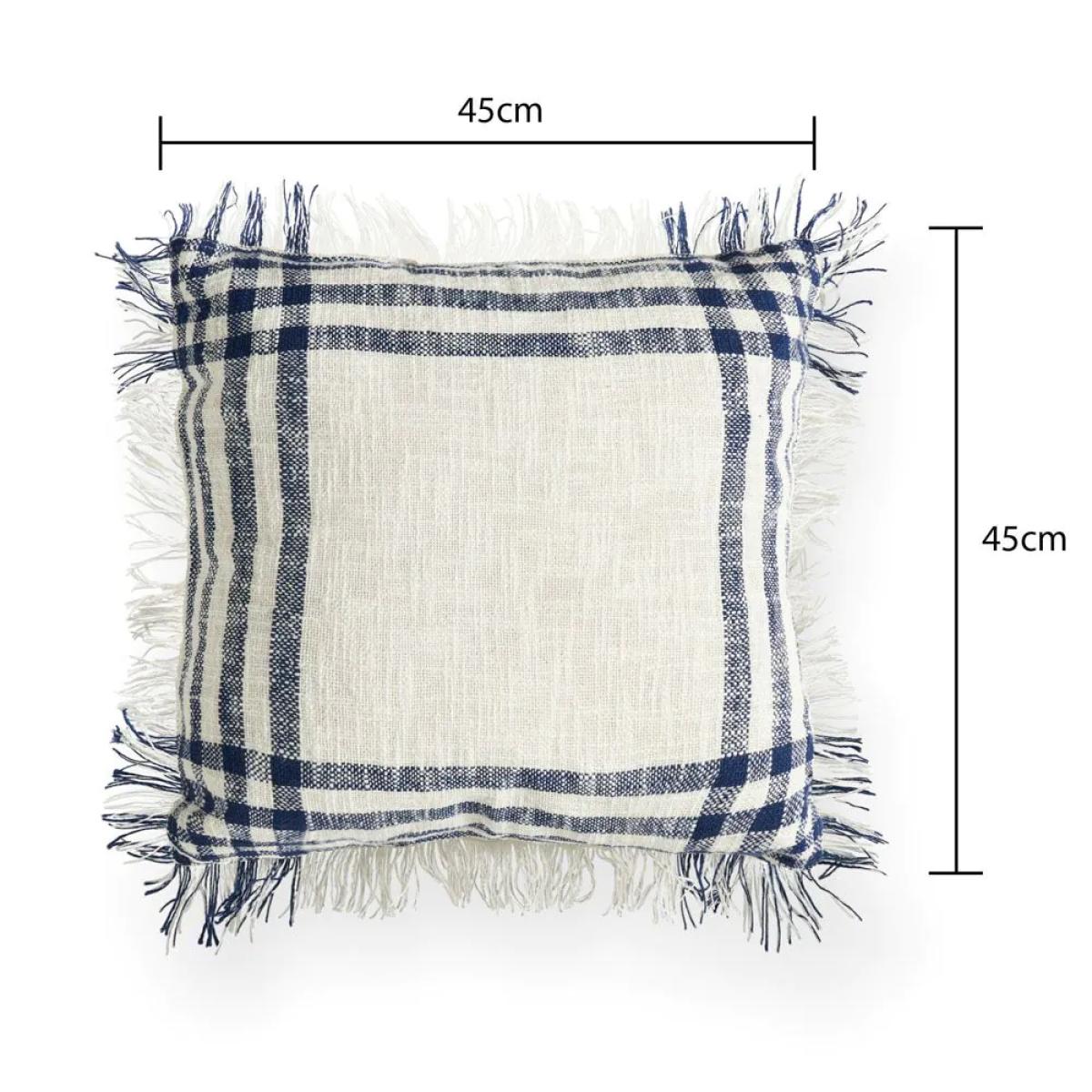 Add a classic look to your home decor with the Tula Check Cushion in Navy. This 45x45cm fringed cushion features a timeless check pattern and a rich white and navy colour, perfect for enhancing the look of your sofas, chairs, or beds. It offers both style and comfort, making it a great addition to any room.