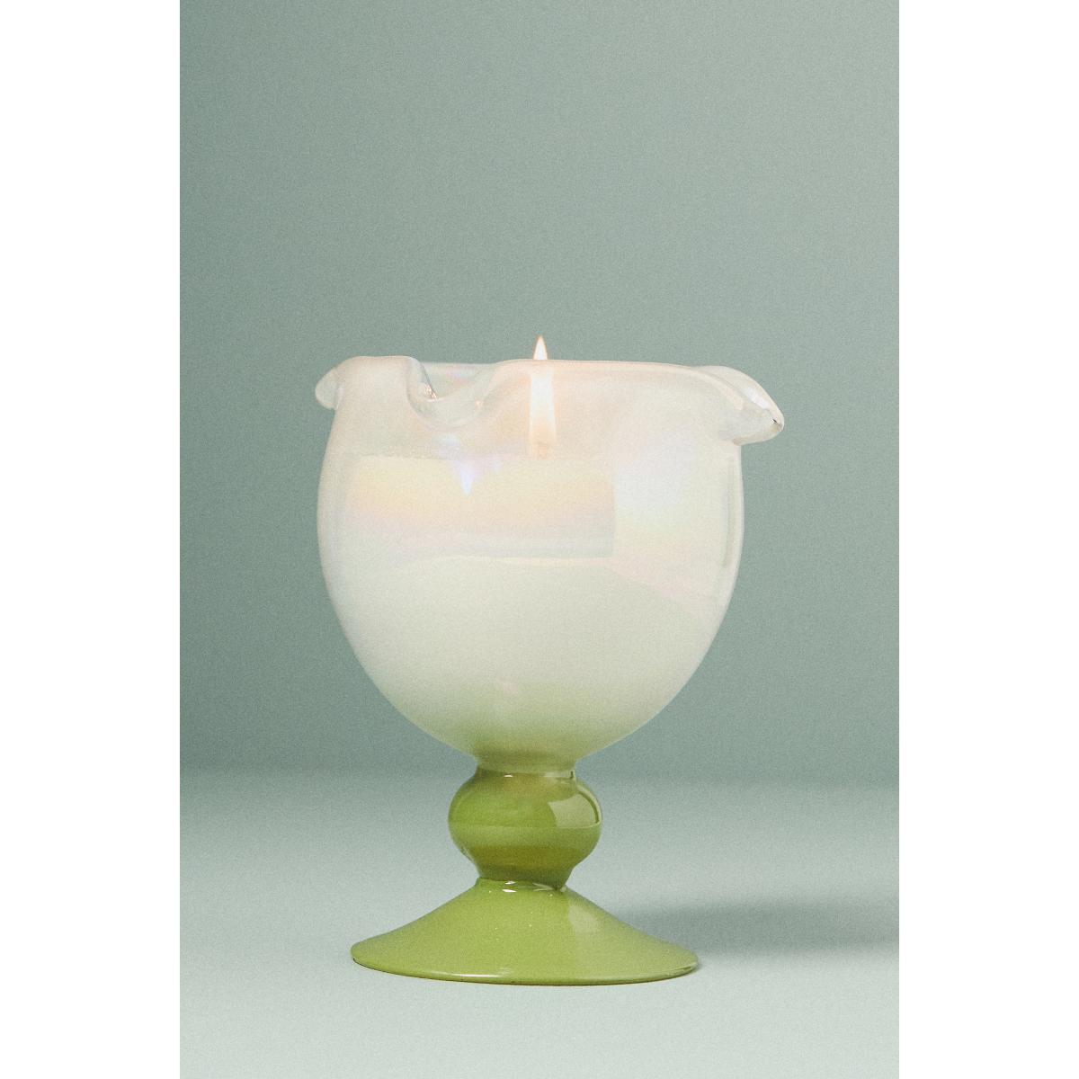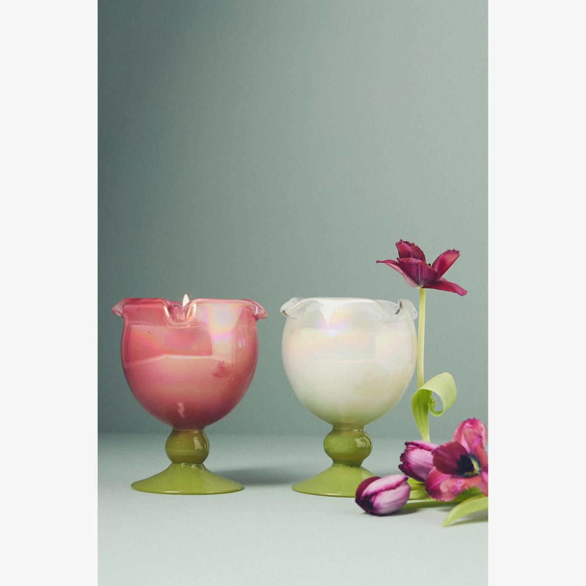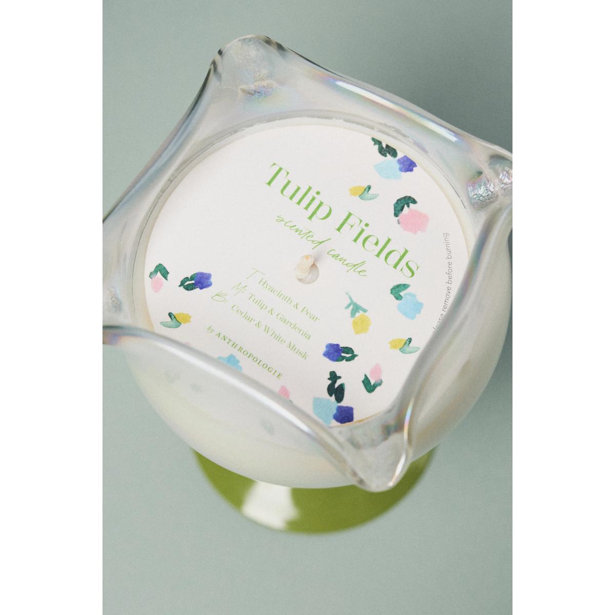 Nestled in a two-tone iridescent tulip-inspired glass vessel, this candle brings a touch of elegance and warmth, casting a soft glow in any room. Tulip Fields (Floral Fresh):A blend of hyacinth, pear, apple, raspberry, and galbanum waltzes into a floral heart of tulip, gardenia, and tuberose, finished with clean, woody notes of cedar, white musk, and ozone. For the best burn experience, keep the following in mind: The first time you light your candle, allow it to burn until the wax pool melts all the way to the edge; for a larger candle, this may take several hours. Wax has " memory," so if it is extinguished with a partial pool, that will prevent a full, even pool from forming in the future. Trim your wick each time you light the candle, removing any " bloom" from the previous burn. We recommend lighting a wick that is 1/4-1/2" in length. Ensure that your candle is placed on a heat-safe surface. Do not allow wick trimmings, dust, or other materials to accumulate in the wax pool. To ensure safety and longevity, be sure to check the bottom of your candle for additional instructions, including details on when to discontinue use. Tula Floral Tulip Fields Pedestal Candle by Anthropologie in White Size: Small