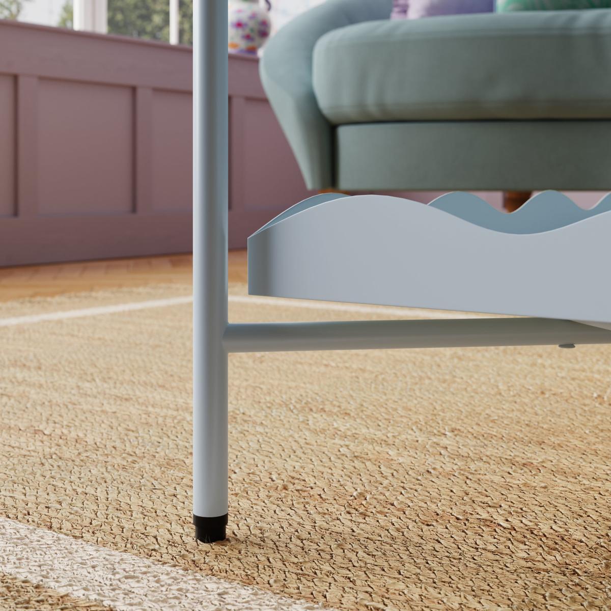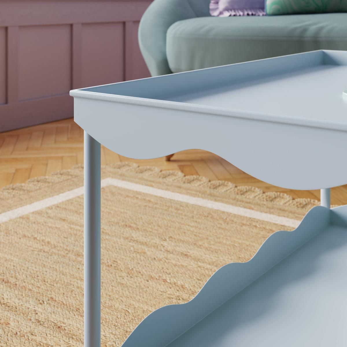 * Metal frame* Wiggle detail* Easy to assemble This table's clean, angular design is enhanced by wiggle-edged tops and supported by a sleek metal frame. The refreshing colours adds a bright feel, making these tables an excellent choice for brightening up any room.