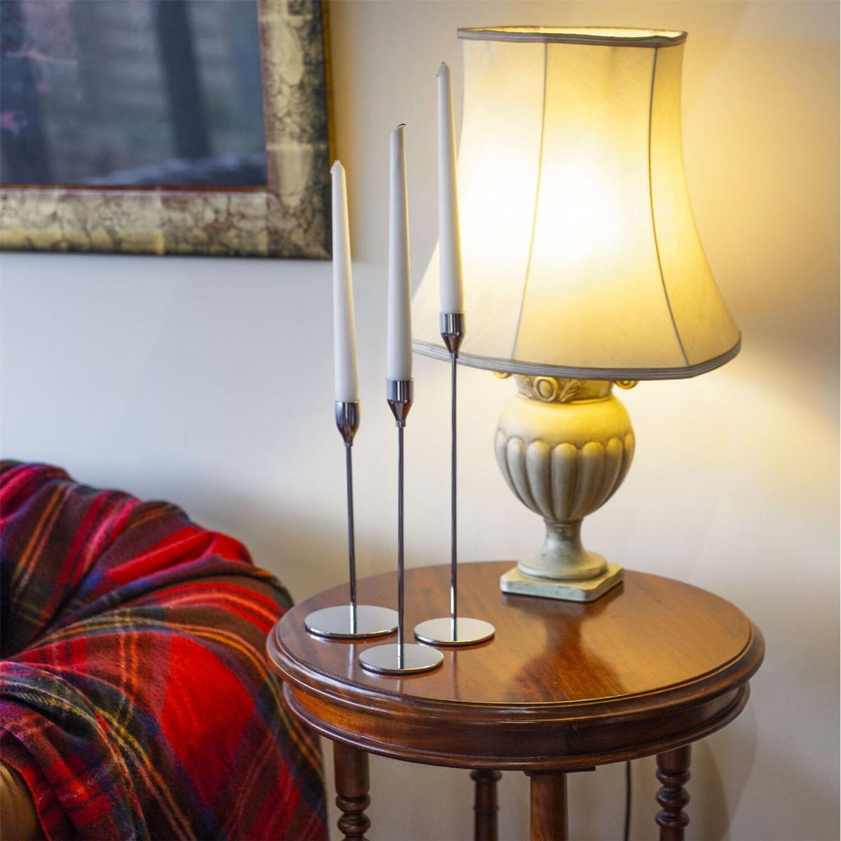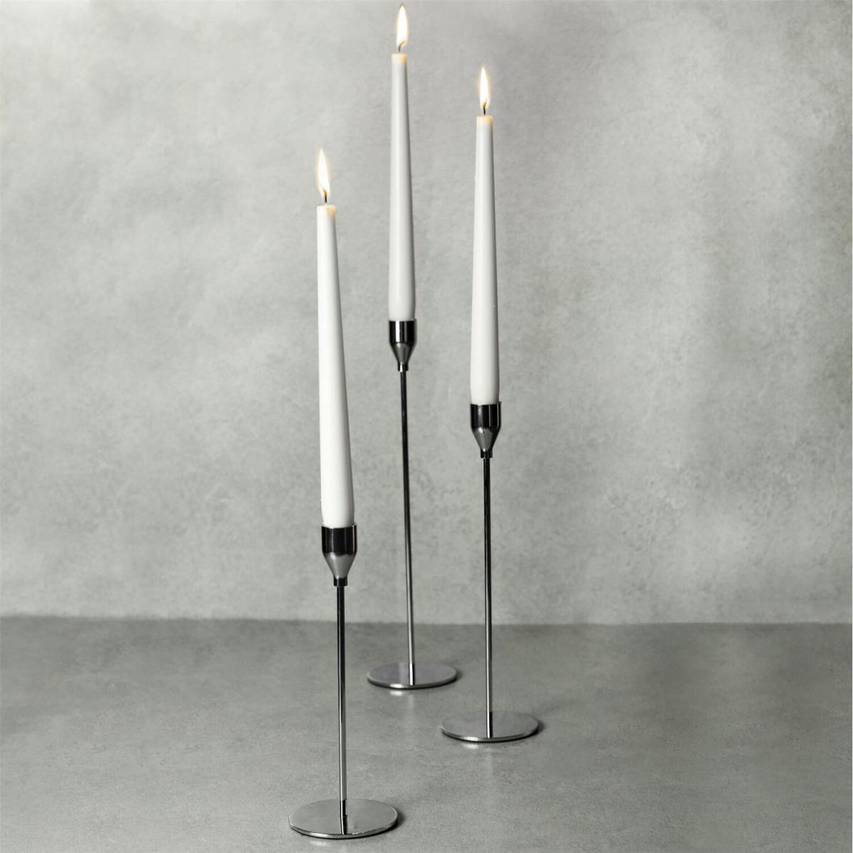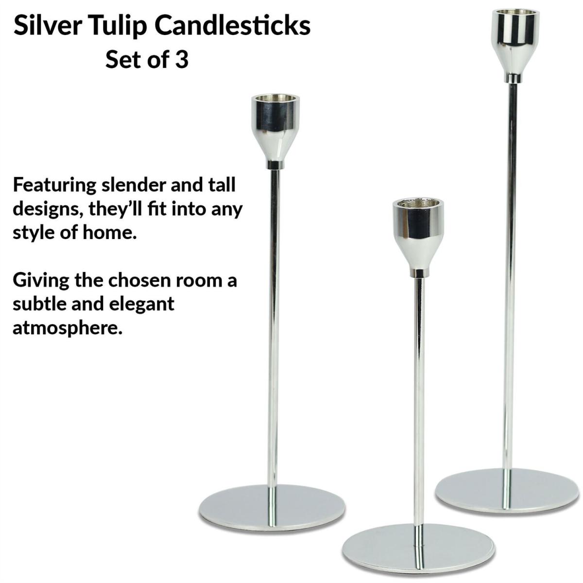 I love these tulip candlesticks for their sleek, contemporary look that adds a touch of elegance without overpowering a space. They work particularly well in minimalist or modern interiors, where their silver finish complements metallic accents and neutral palettes. For styling tips, try grouping them on a mantelpiece or side table, mixing heights for visual interest, or set them as a centrepiece on a dining table for a glossy, understated sparkle. They're versatile enough to work in both formal settings and more relaxed, everyday interiors, making them a smart, stylish addition to many homes.