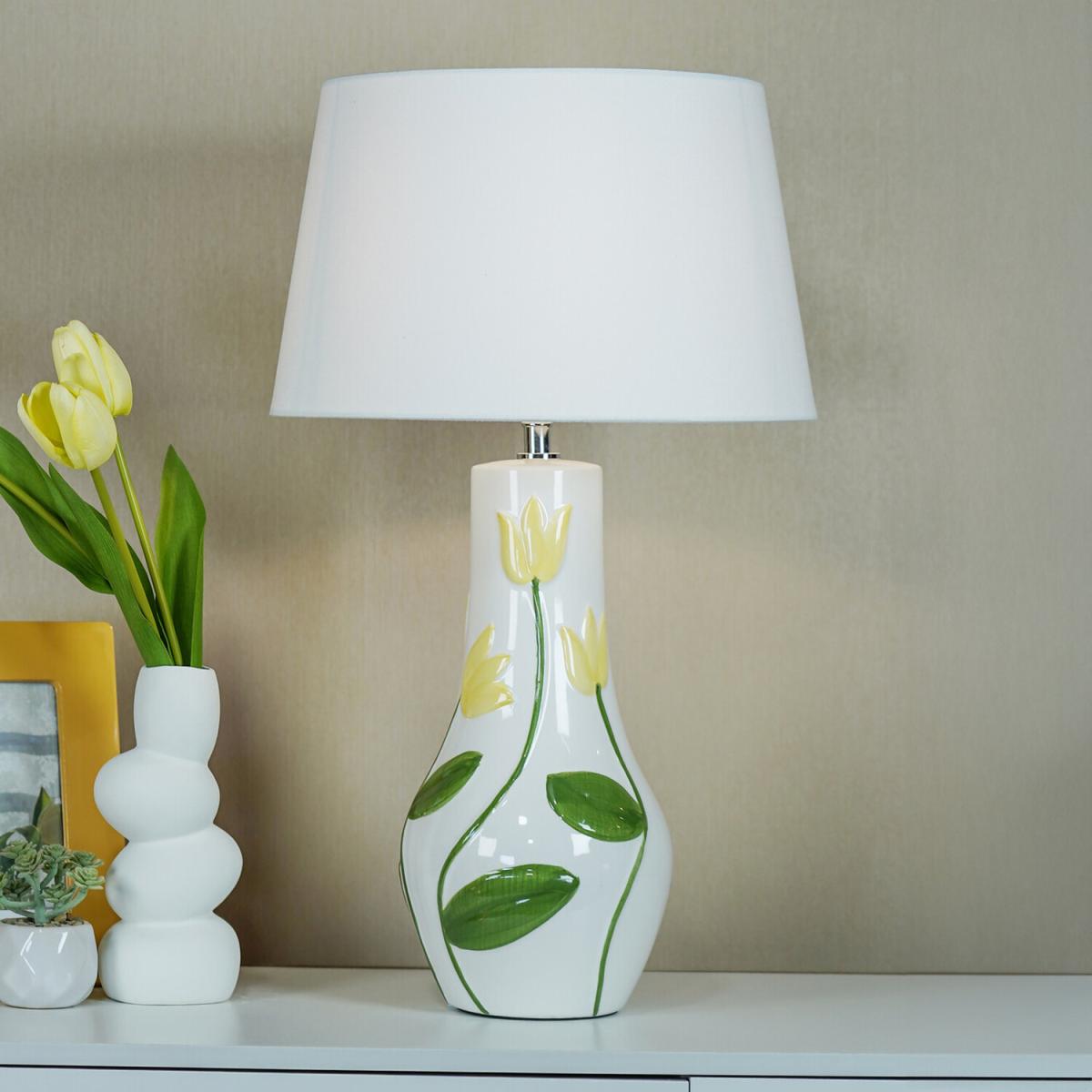 I love this table lamp for its playful Tulip embossed design, which adds a touch of charm and texture to any setting. It works particularly well in bright, airy interiors like kitchens, living rooms, or even a cosy reading nook. Its white colour makes it versatile, easily blending into both modern and cottage-style schemes. For a styled look, pair it with minimalist accessories or complementary floral accents. Practical tips include using it atop a side table or console to highlight its design, and adding a warm bulb for a softer glow-making it both functional and decorative. Overall, it’s a lovely piece that can lift a space with a subtle pop of personality.