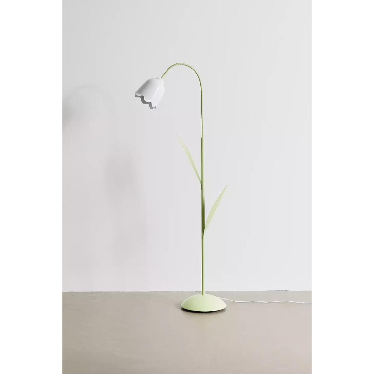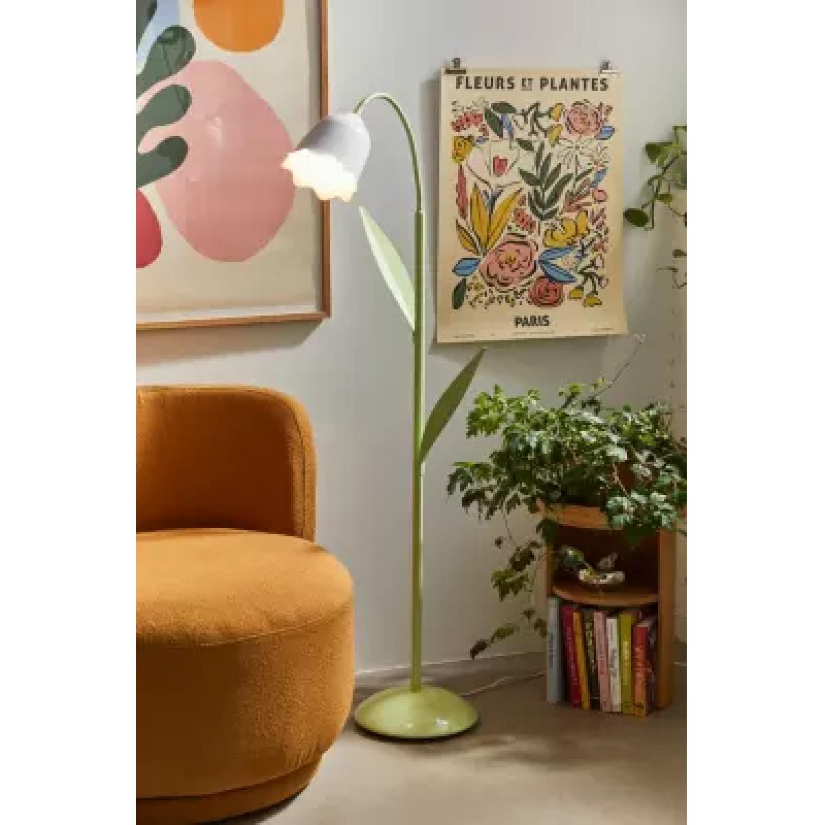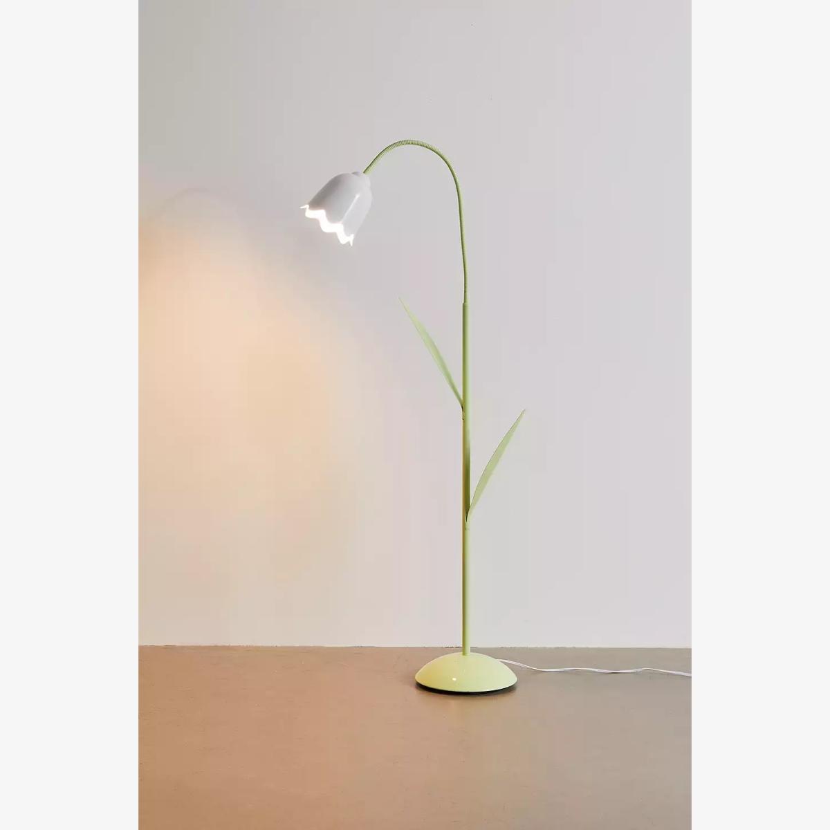 Spend time in a field of flowers with this super-cute tulip-shaped lamp. This floor lamp stands tall with a metal base and leafy stem. Lampshade is complete with metal petals and an adjustable gooseneck design. Exclusive to UO. **Content + Care** \- Metal \- Wipe clean \- Includes a UK plug \- Requires 1 x E27 bulb (not included) **Size** \- Dimensions: W: 40.6cm x H: 160cm \- Base dimensions: W: 27.9cm x H: 5cm \- Shade dimensions: Dia: 16.8cm x H: 17.5cm \- Cord length: 213cm \- Weight: 12.6 lbs \- Shipping package dimensions: L: 46.2cm x W: 24.9cm x H: 86.4cm \- Shipping package weight: 16.5 lbs