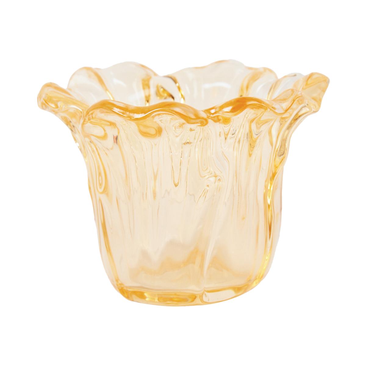 Add a touch of elegance to your home with the Tulip Glass Tealight Holder. This lovely piece resembles the shape of a delicate tulip with a wavy edge and is available in three assorted colours - yellow, clear or green. When you light a tealight inside, the translucent glass casts a warm, inviting glow. It's a great fit for any space, blending practicality with a floral touch, making it a delightful addition to your decor.