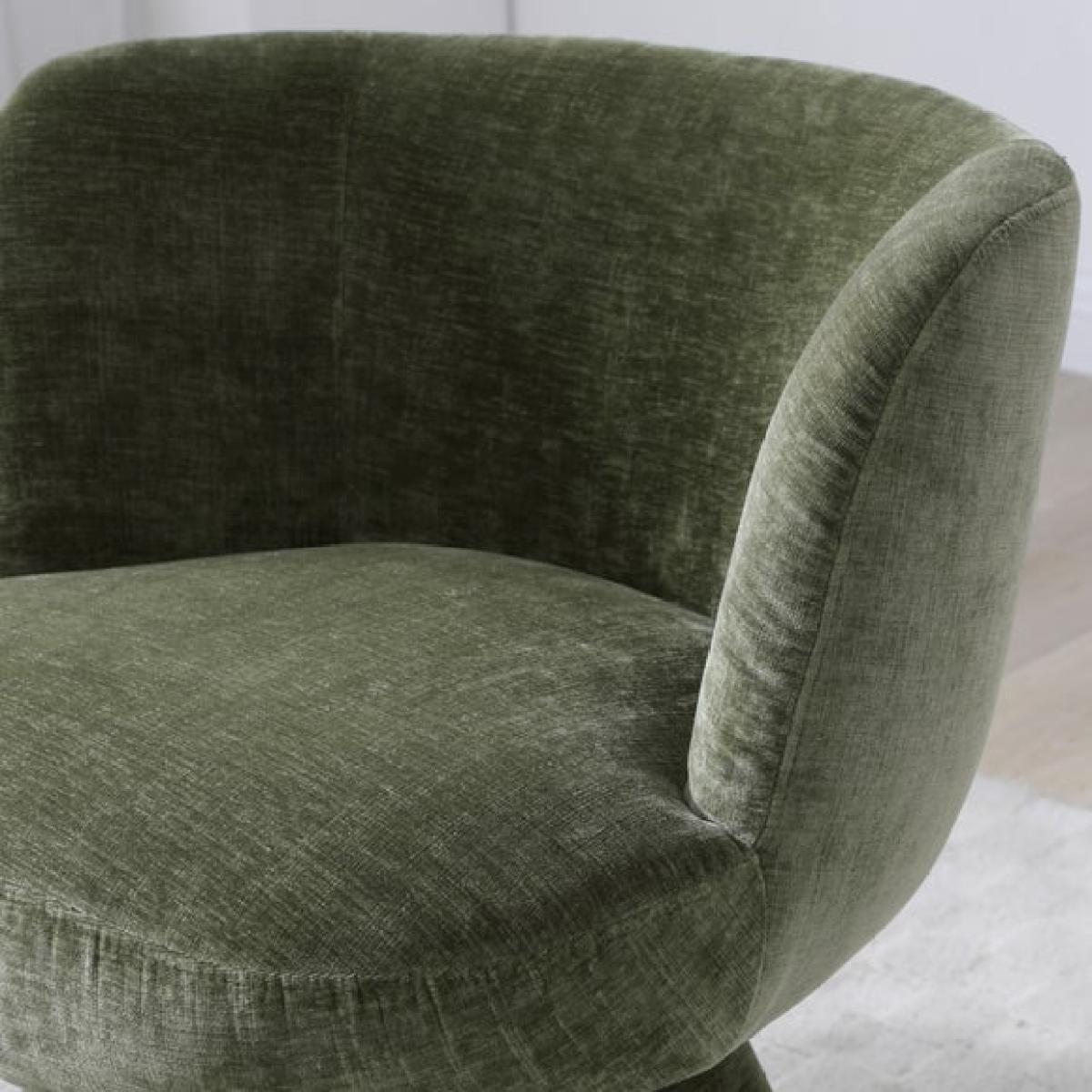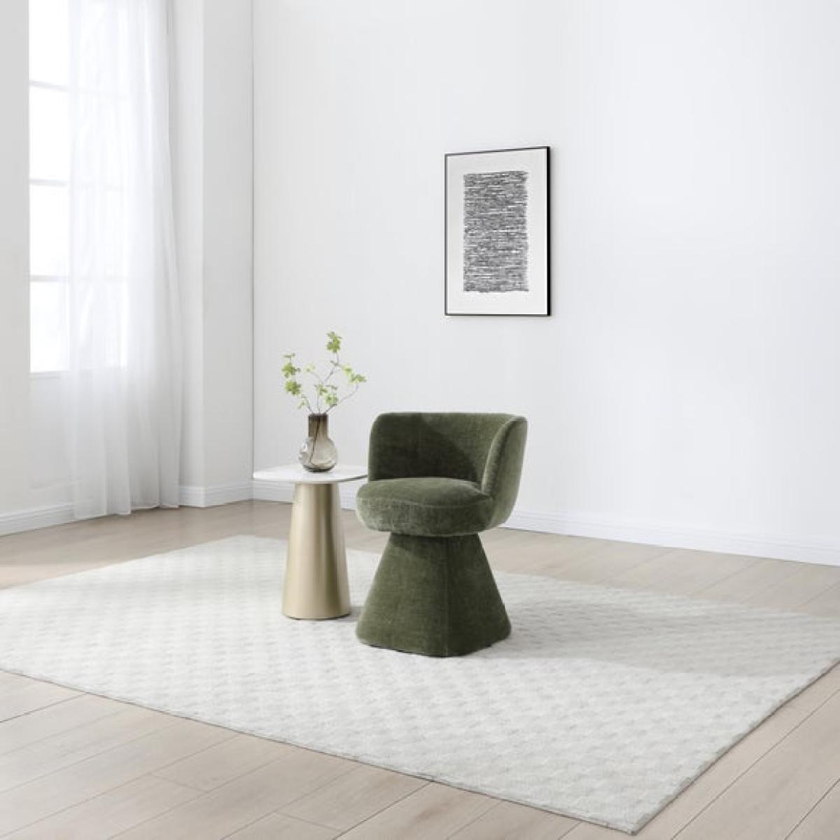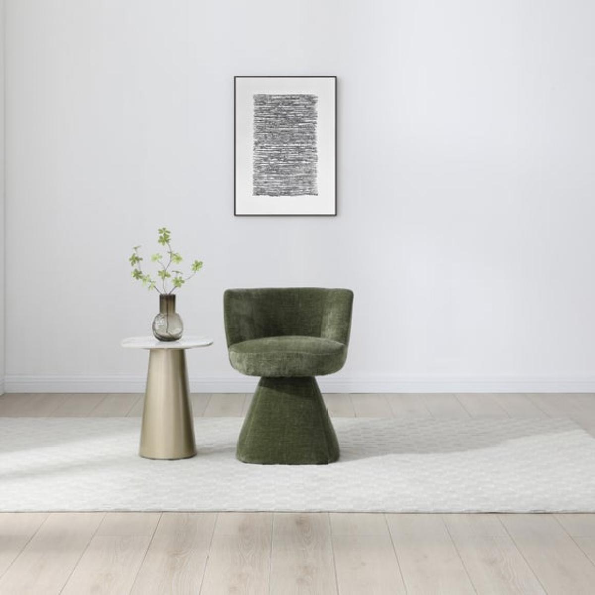 I love the Tulip Luxe Chenille Swivel Chair for its textured fabric and contemporary silhouette, making it a chic addition to both vintage and modern interiors. It works particularly well in dressing rooms, bedrooms, or as a statement accent in a cosy nook. Styling tips include pairing it with plush cushions or a light throw to add comfort, and positioning it near a statement mirror or side table for practicality. The swivel feature makes it perfect for versatile use, while its muted green shade can be complemented with neutral tones or earthy accents for a harmonious look. Overall, a versatile piece that adds texture and a touch of modern elegance.