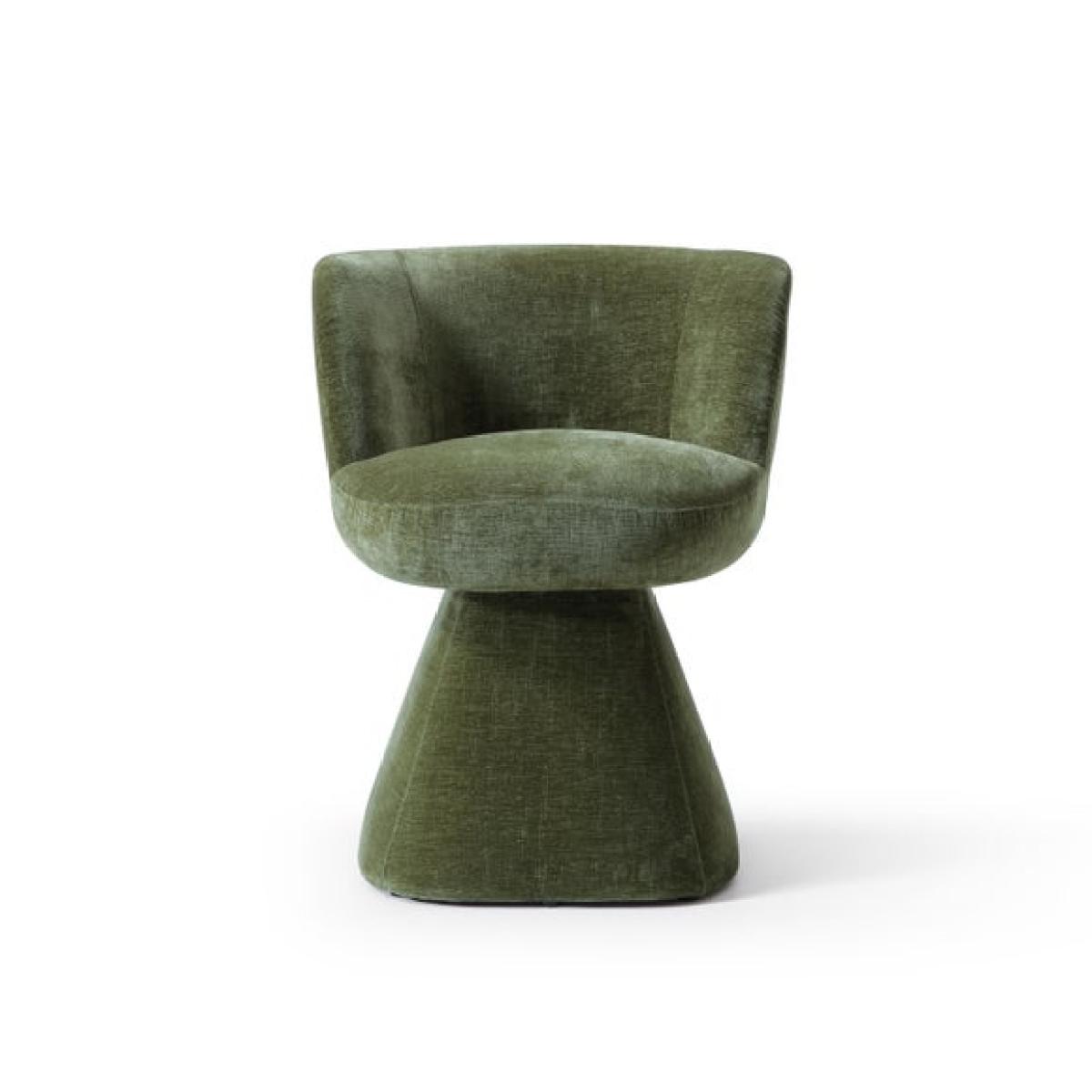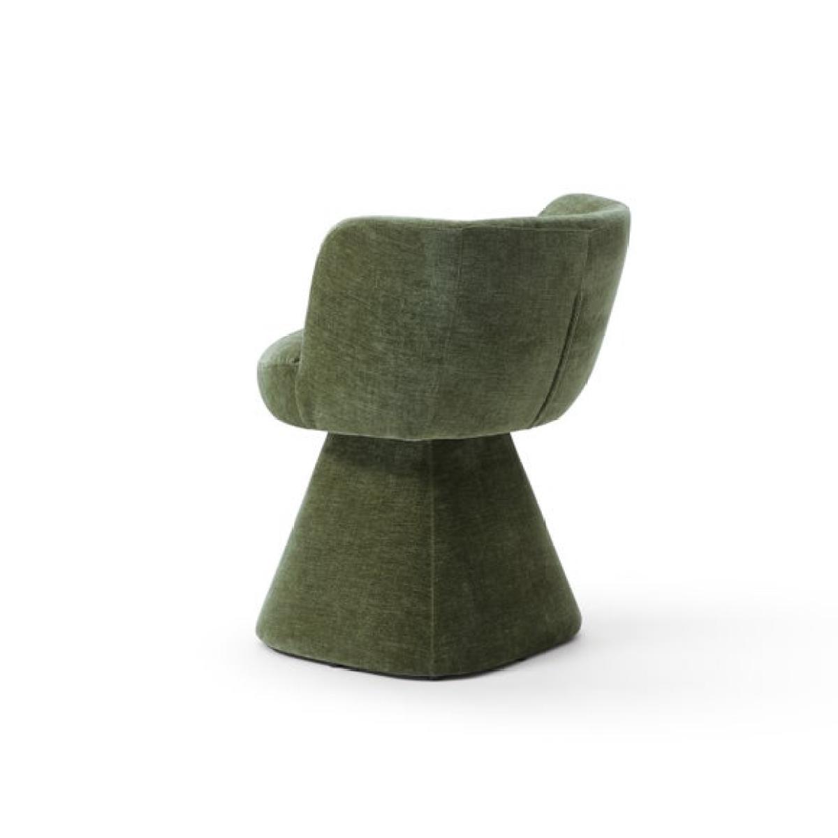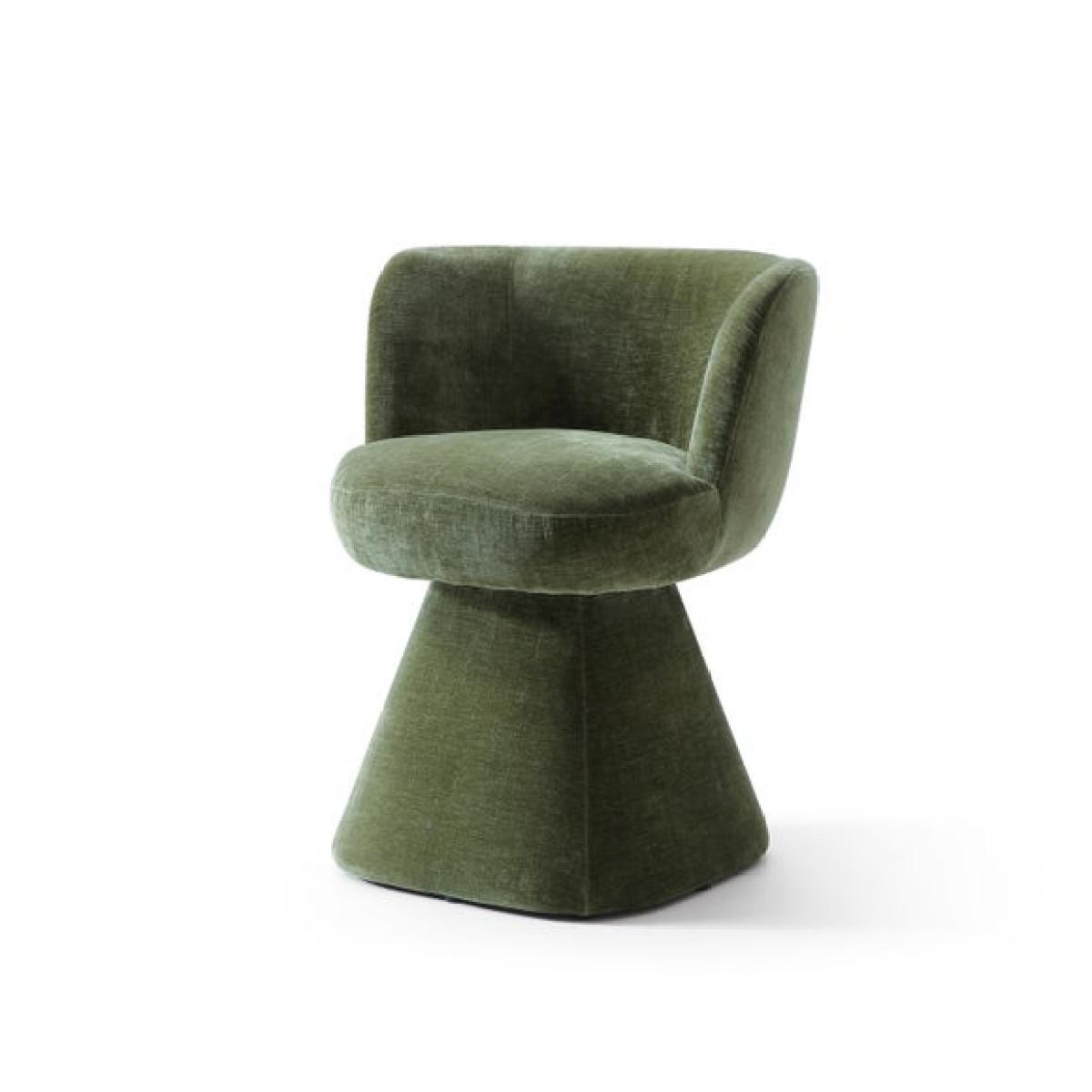 I love the Tulip Luxe Chenille Swivel Chair for its textured fabric and contemporary silhouette, making it a chic addition to both vintage and modern interiors. It works particularly well in dressing rooms, bedrooms, or as a statement accent in a cosy nook. Styling tips include pairing it with plush cushions or a light throw to add comfort, and positioning it near a statement mirror or side table for practicality. The swivel feature makes it perfect for versatile use, while its muted green shade can be complemented with neutral tones or earthy accents for a harmonious look. Overall, a versatile piece that adds texture and a touch of modern elegance.