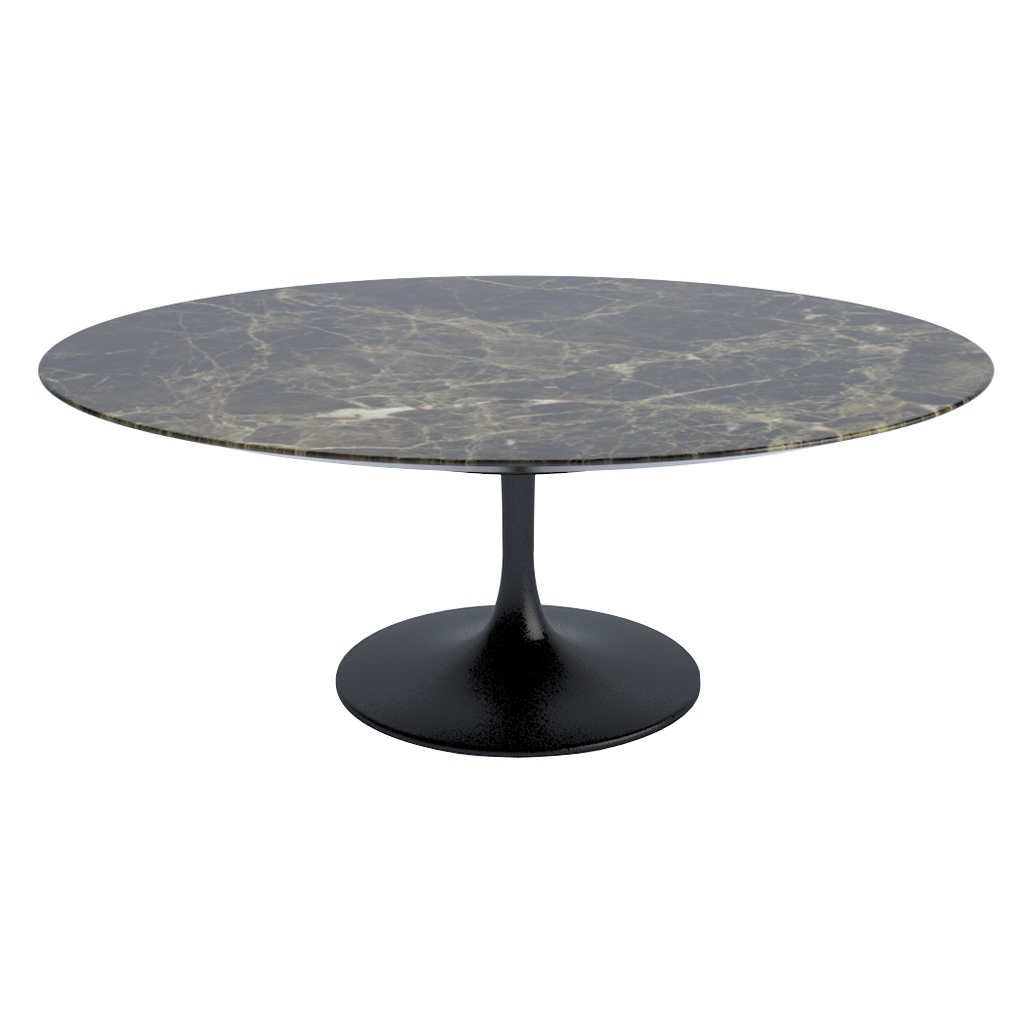 The Tulip Coffee Table with a satin finish Emperador marble top is an icon of mid-century design and manufactured exclusively by Knoll, carrying Eero Saarinen's signature as a mark of authenticity. Conceptualised at the behest of mid-century modern design entrepreneur Florence Knoll, Saarinen vowed to address the "ugly, confusing, unrestful world" he observed underneath chairs and tables - a so-called "slum of legs. "A five-year design investigation led him to create the revolutionary Pedestal collection first introduced in 1956. A hero product of the collection is this simple yet elegant Tulip Coffee Table whose sweeping silhouette provides the perfect antithesis to the typical clutter found under chairs and tables. The sturdy and sculptural coated aluminium base sweeps elegantly from the floor to support a uniquely veined Emperador marble top accented with a satin finish for a natural honed appearance with protective properties perfect for everyday use.