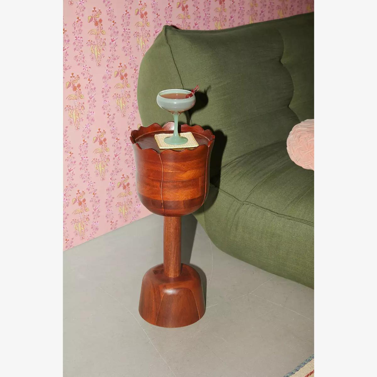 Vintage-inspired side table in a statement tulip silhouette. Crafted from mango wood in a martini table design. Complete with a stable rounded base. **Content + Care** \- 100% Mango wood \- Wipe clean **Size** \- Dia: 22.9cm x H: 55.9cm \- Weight: 6.5kg