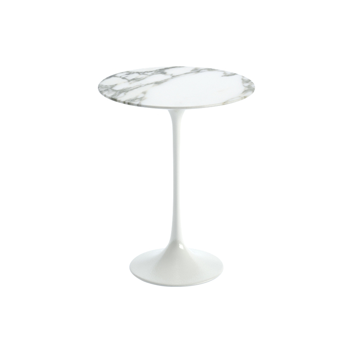 The Tulip Side Table with a satin finish Arabescato marble top is an icon of mid-century design, manufactured exclusively by Knoll and carrying Eero Saarinen’s signature as a mark of authenticity. Conceptualised at the behest of mid-century modern design entrepreneur Florence Knoll, Saarinen vowed to address the “ugly, confusing, unrestful world” he observed underneath chairs and tables – a so-called “slum of legs. ”. A five-year design investigation led him to create the revolutionary Pedestal collection first introduced in 1956. A hero product of the collection is this simple yet elegant Tulip Side Table whose sweeping silhouette provides the perfect antithesis to the typical clutter found under chairs and tables. The sturdy and sculptural coated aluminium base sweeps elegantly from the floor to support a uniquely veined Italian Arabescato marble top accented with a satin finish for a natural honed appearance with protective properties perfect for everyday use. Also available with a coated gloss finish. Here.