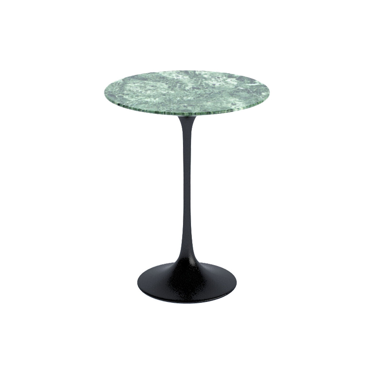The Tulip Side Table with a Verdi Alpi marble top and black base is an icon of mid-century design, manufactured exclusively by Knoll and carrying Eero Saarinen's signature as a mark of authenticity. Conceptualised at the behest of mid-century modern design entrepreneur Florence Knoll, Saarinen vowed to address the "ugly, confusing, unrestful world" he observed underneath chairs and tables - a so-called "slum of legs. "A five-year design investigation led him to create the revolutionary Pedestal collection, first introduced in 1956. A hero product of the collection is this simple yet elegant Tulip Side Table, whose sweeping silhouette provides the perfect antithesis to the typical clutter found under chairs and tables. The sturdy and sculptural black coated aluminium base sweeps elegantly from the floor to support a uniquely veined Italian Verdi Alpi marble top, which is sealed with a transparent polyester coating to provide a stain-resistant and wipe-clean finish. View our entire range of Saarinen furniture here.