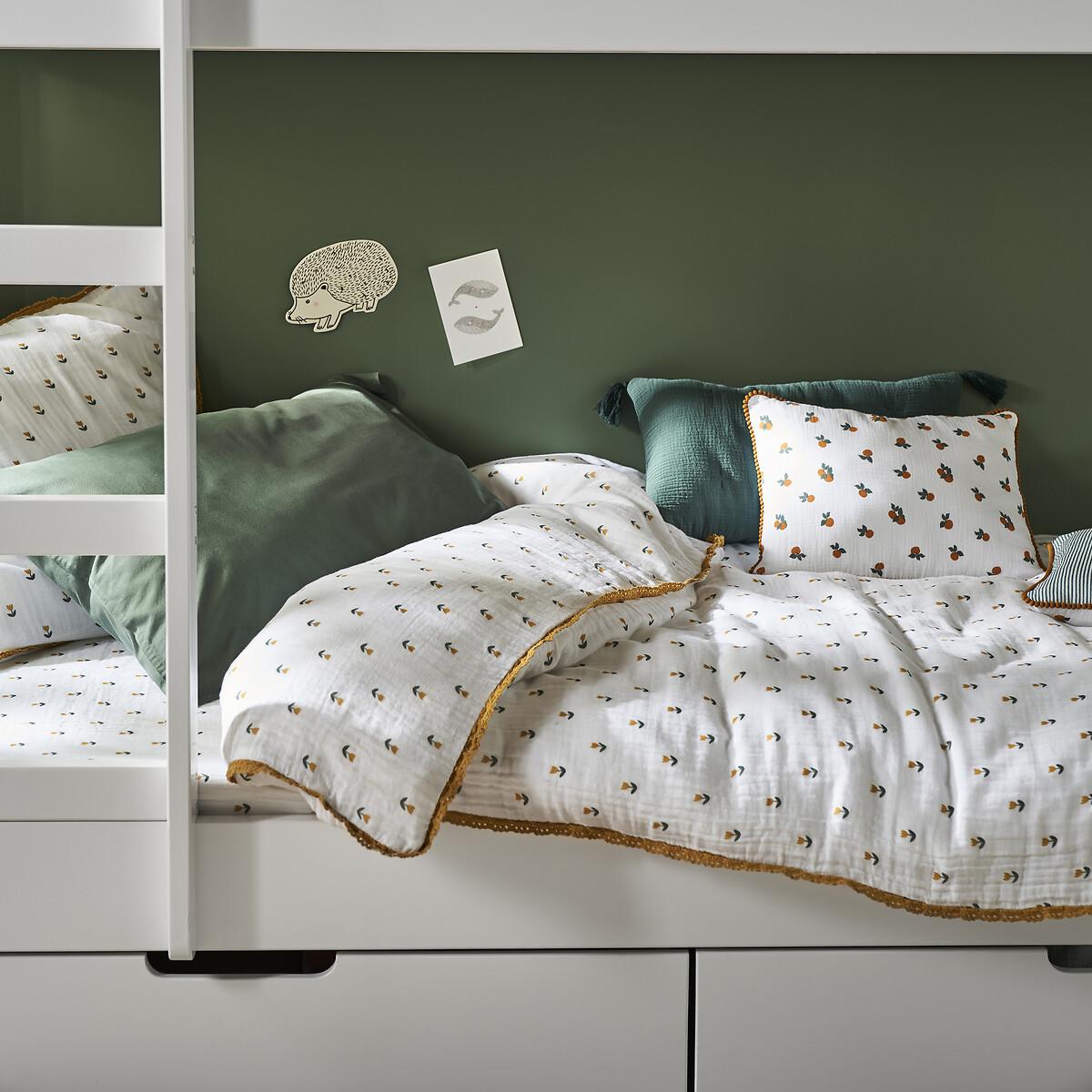 I love the Tulipe floral sheet for its fresh, classic look that adds a gentle charm to any child's room. Its 100% cotton muslin fabric is breathable and soft, making it practical for sensitive young skin. It works particularly well in Scandi or minimalist interiors due to its clean white base and delicate floral detailing, but it also pairs nicely with more playful, colourful themes. For styling, consider layering with other coordinating textiles - like cosy blankets or cushions - to create a balanced and inviting space. This sheet’s versatile design makes it easy to update as your child's tastes evolve, while the high-quality fabric ensures it remains comfortable and durable through frequent washes.
