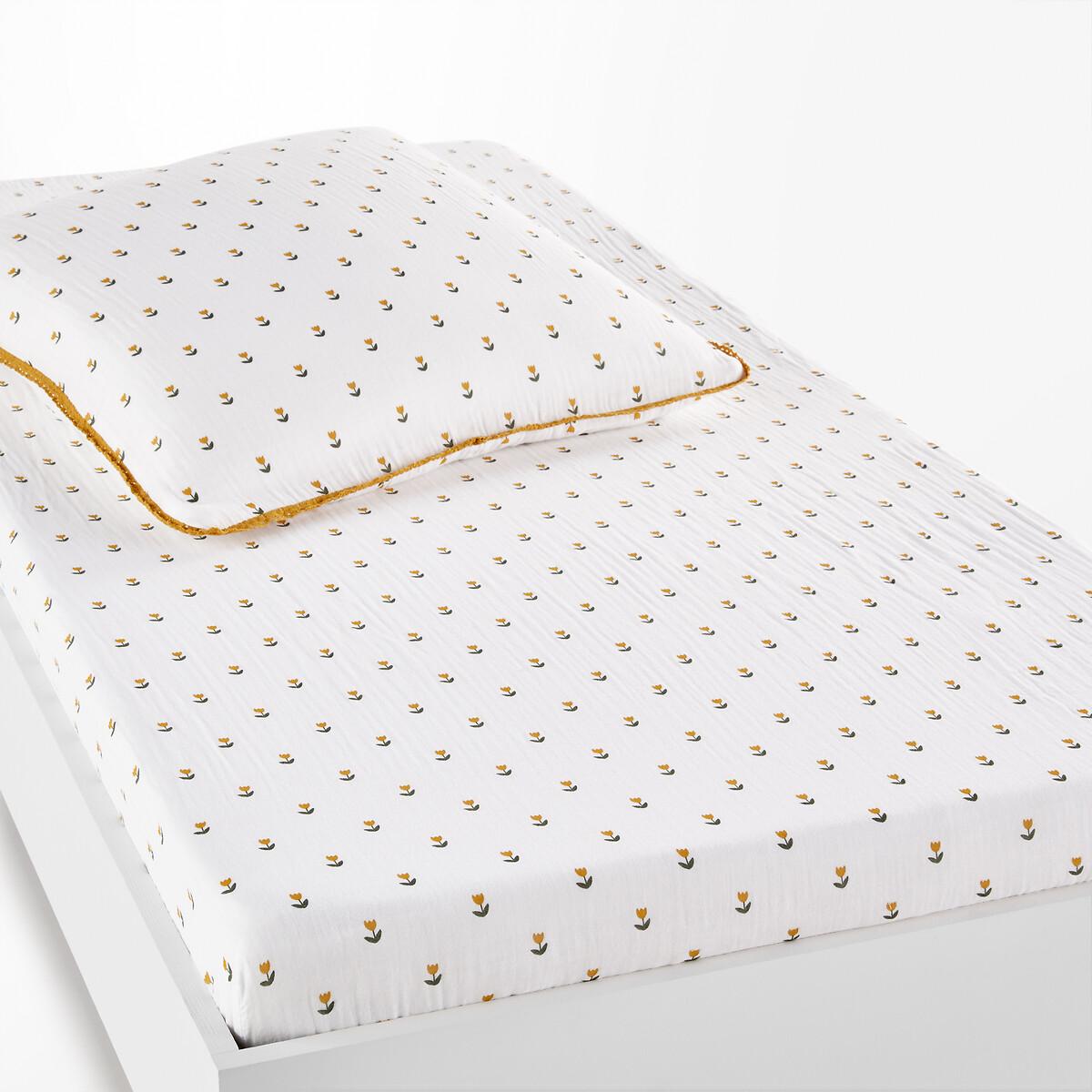 Tulipe Floral 100% Cotton Muslin Fitted Sheet