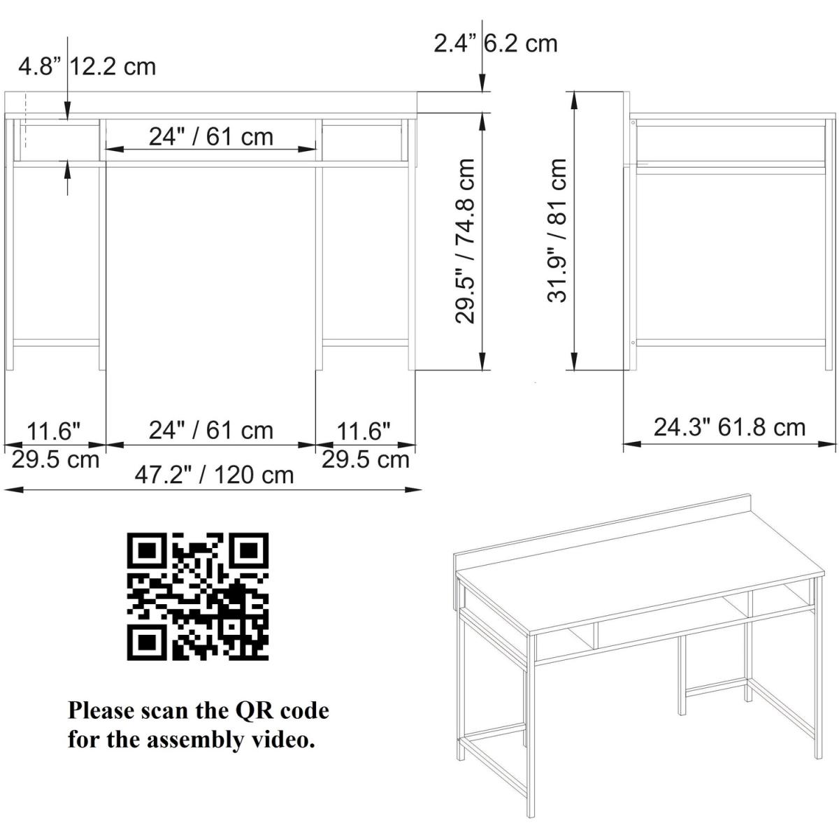 Tumata 47" wide computer desk with metal frame and three shelves provide ample working/storage space. It has an attractive look that will fit various home/office decorations. The desktop and the shelves are made of 18mm thick melamine coated particle board and banded with PVC edge band, while the frame/legs are constructed from iron metal. Metal parts are coated with scratch and impact-resistant industrial static paint.