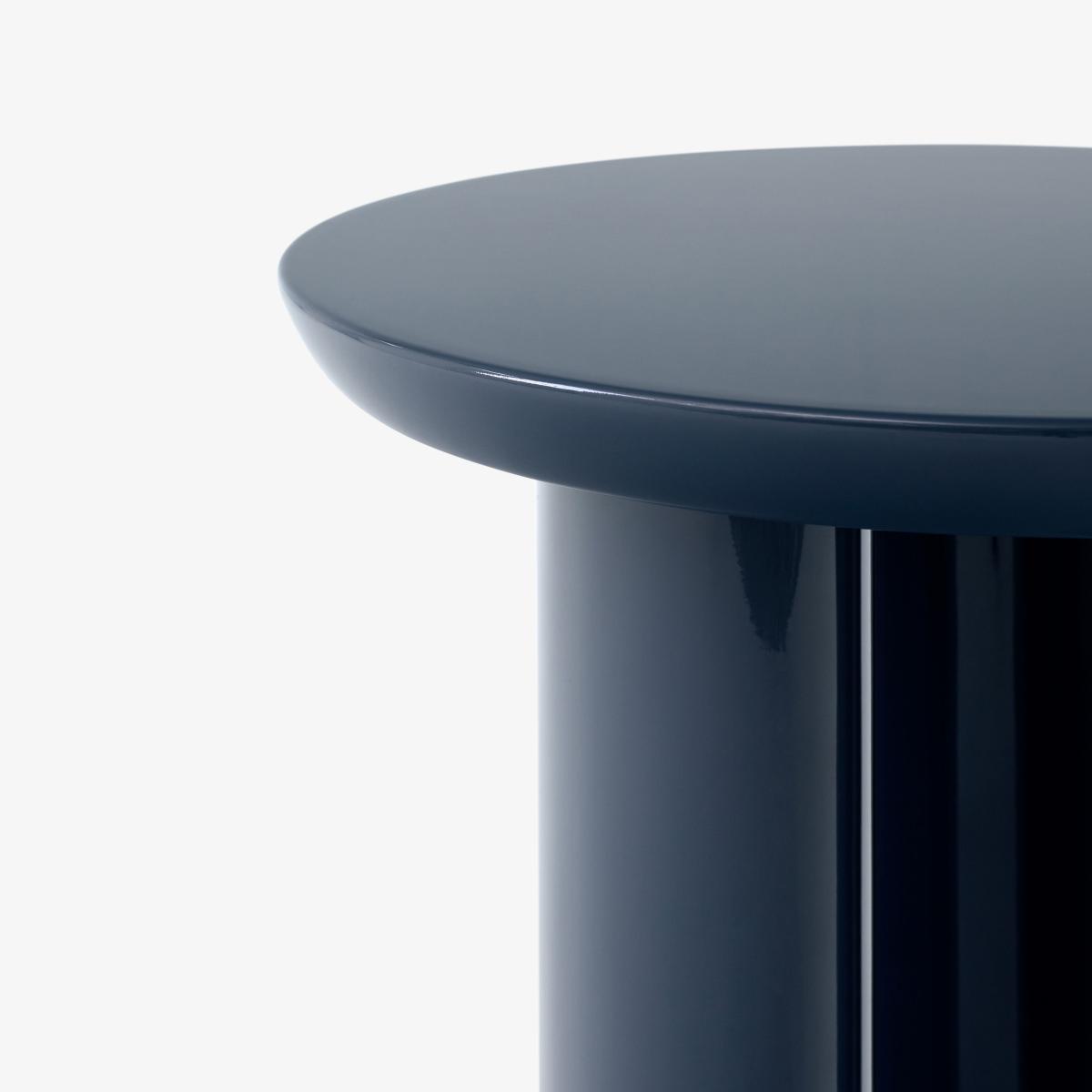 British designer John Astbury wanted to create a side table with this monolithic silhouette. Inspired by brutalism, the Tung table offers a set of balanced volumes. It boasts curved, generous lines that are simple and solid. The thick tabletop thrones over three wide cylindrical and robust legs. This side table is made in MDF with a high-shine finish. The geometric silhouette is highlighted by the ultra-high-shine lacquered finish and stunning colour palette. This zesty little table lamp will add dynamics to your décor.