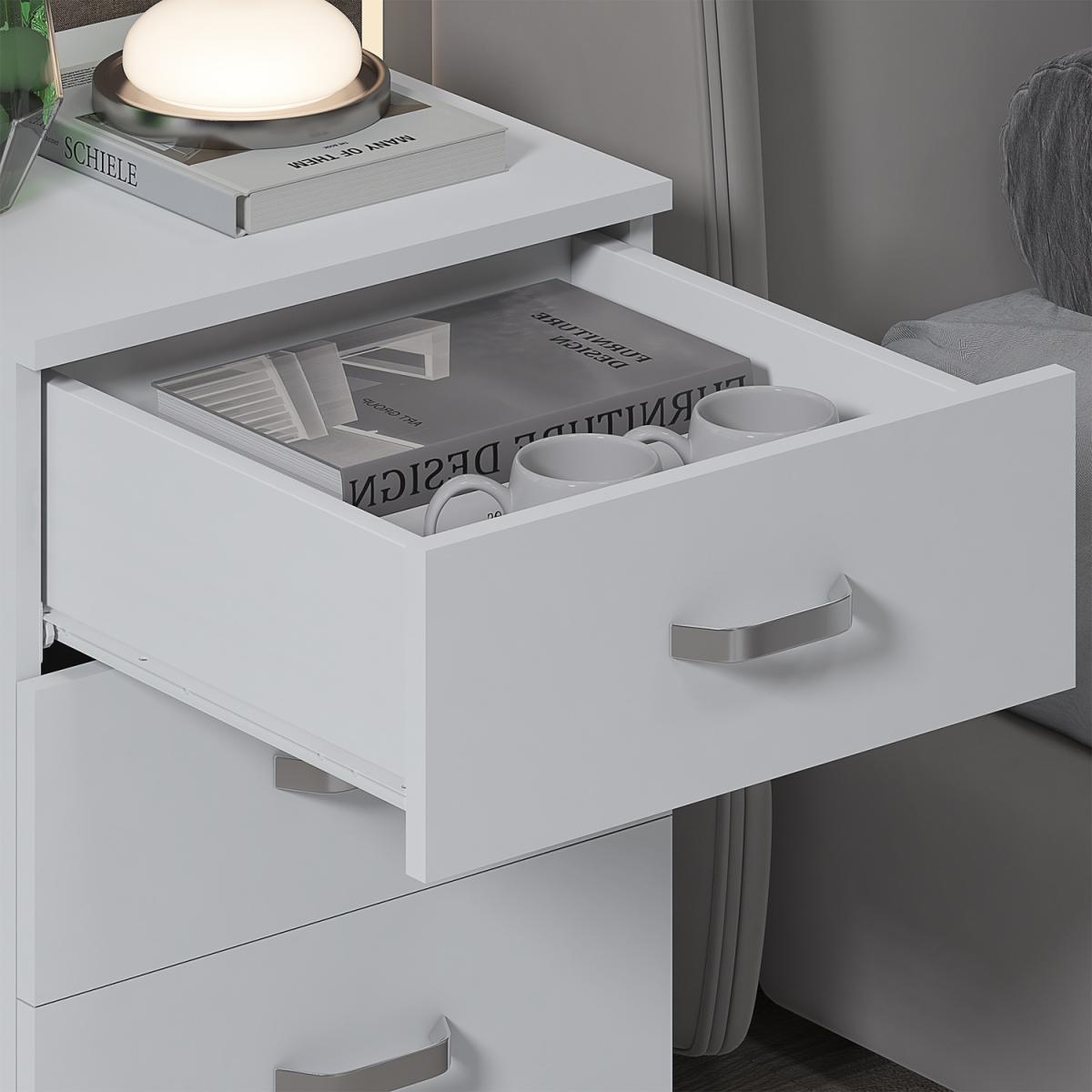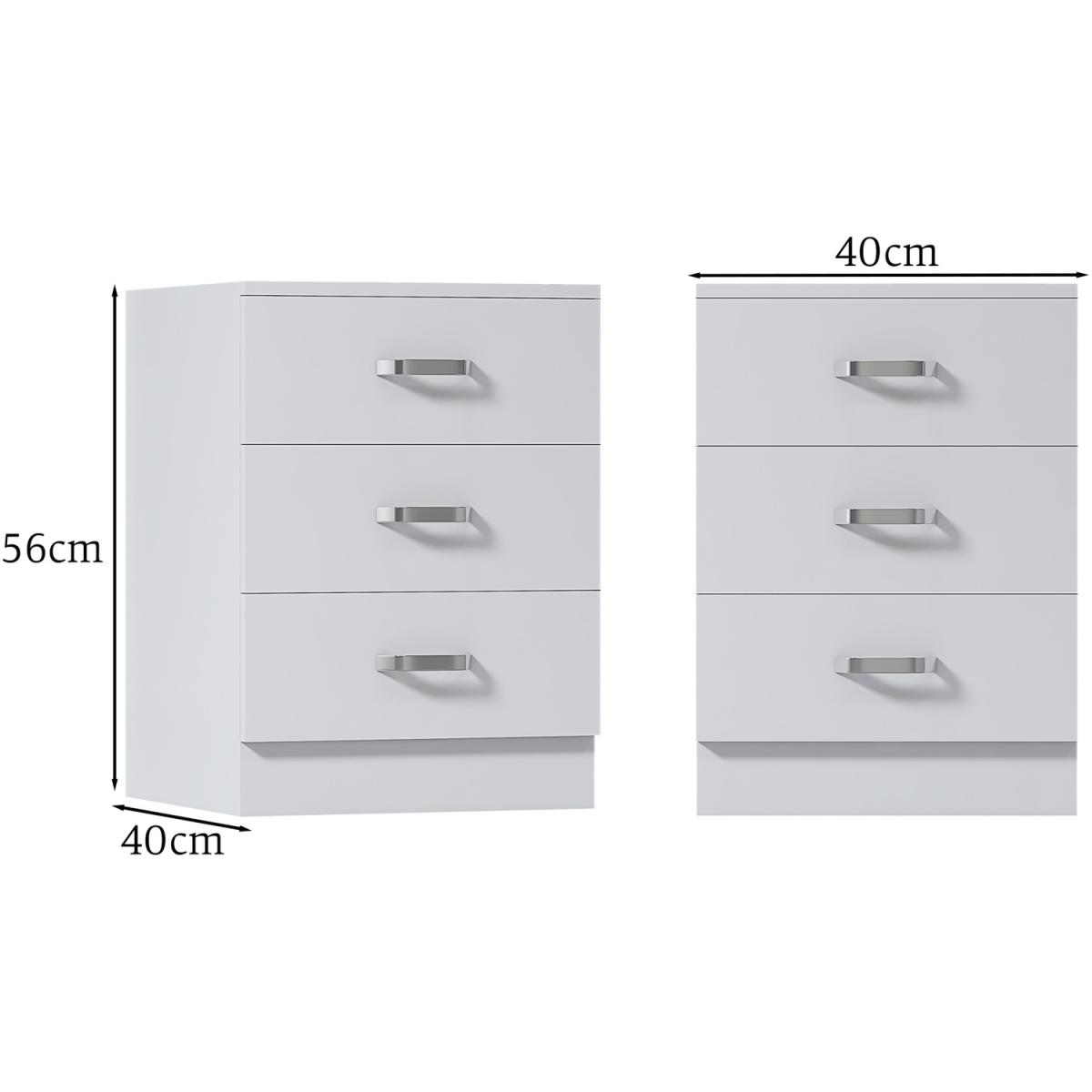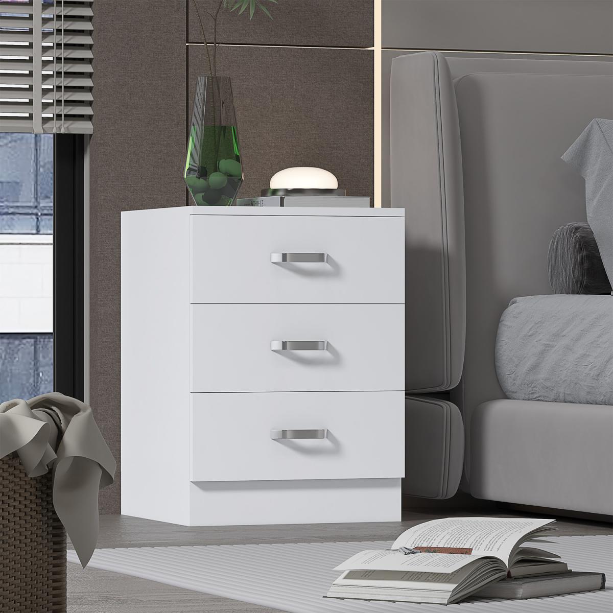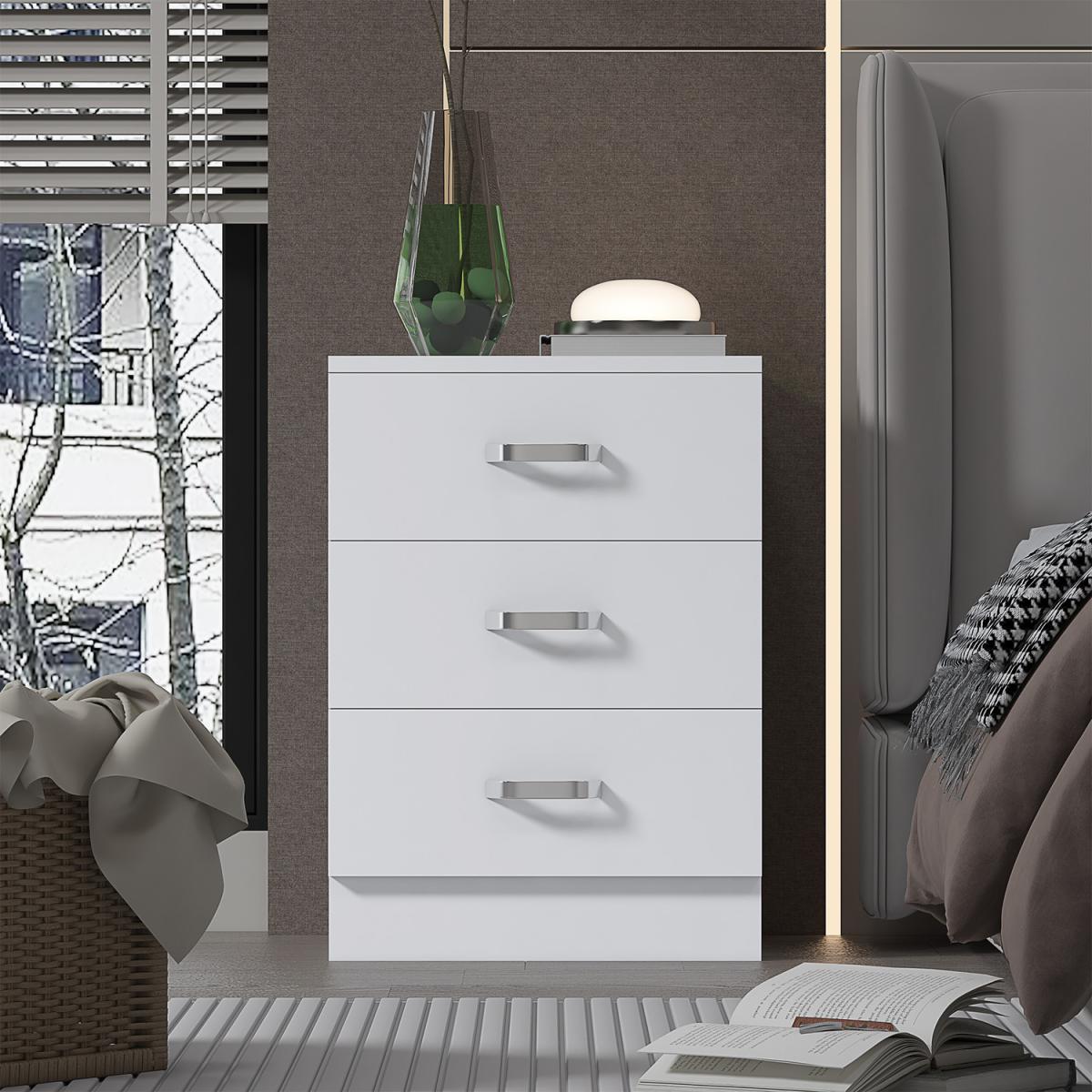Introducing the Tunis 3 Drawer Bedside Chest in a sleek and sophisticated Matt Finish. Designed to maximize storage while minimising floor space, this bedside chest is perfect for those seeking a stylish storage solution. The Tunis bedside chest features a contemporary design with clean lines, making it a versatile addition to any modern or minimalist interior. Its slim profile allows it to fit seamlessly into narrow spaces, corners, or alongside other furniture pieces without overwhelming the room. Crafted with quality in mind, this bedside chest boasts three spacious and deep drawers, providing ample storage for your clothing, accessories, or any other items you wish to keep organised. The drawers effortlessly glide open and closed, thanks to the smooth metal runners, ensuring easy access and a hassle-free user experience.