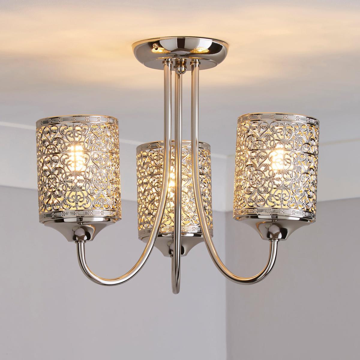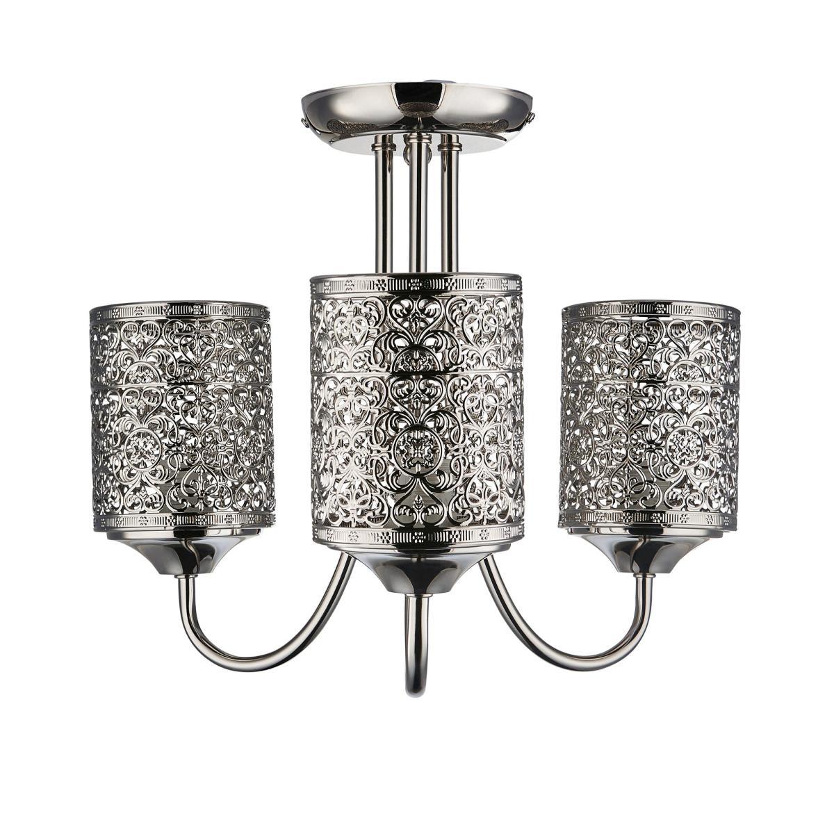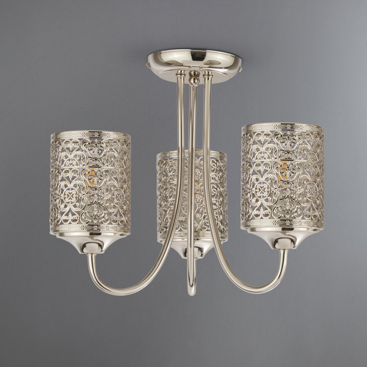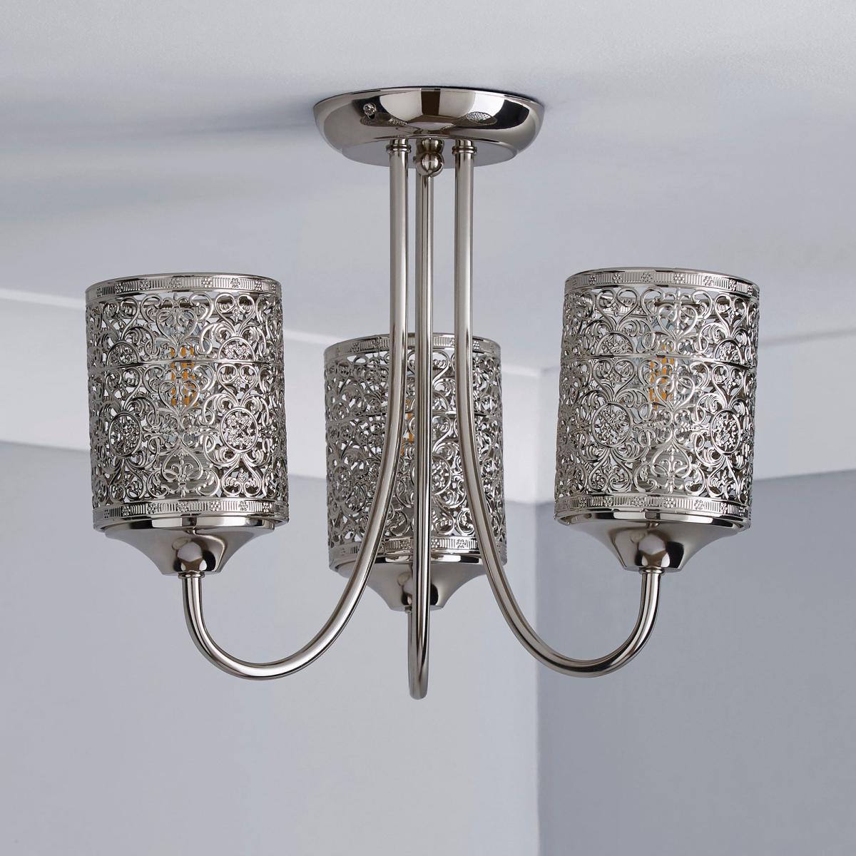 Tunis 3 Light Fretwork Nickel Ceiling Fitting Champagne