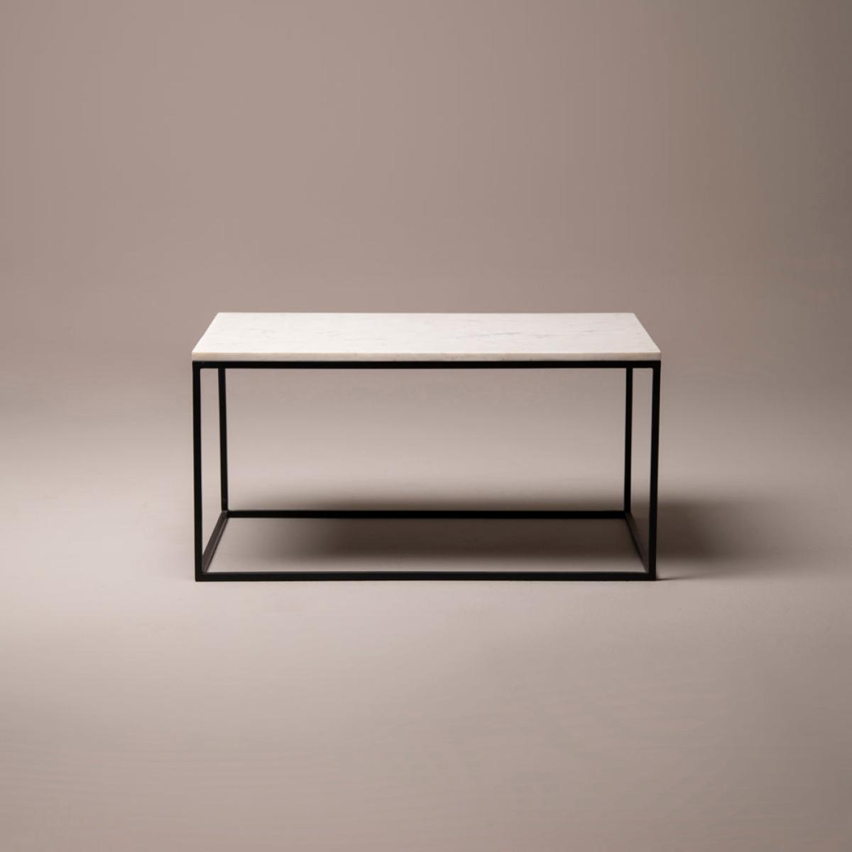 Striking in its simplicity, the Tura Marble Coffee Table brings refined elegance to your living space. Featuring a sleek white marble tabletop with natural veining, this contemporary piece is balanced by a slim black powder-coated metal frame, offering a clean, architectural look. Designed to anchor your lounge area with understated luxury, its compact proportions make it ideal for both spacious and smaller interiors.