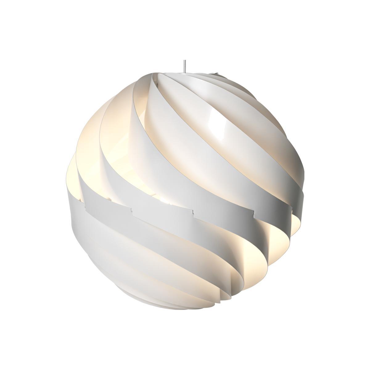 Louis Weisdorf's Turbo Pendant for Gubi is the sum of a dozen equally shaped aluminium slats, seamlessly intertwined. Presenting a ball-like spherical shape, the captivating pendant is completed with a bold matt-white powder-coating. Danish designer Louis Weisdorf founded his design studio in Copenhagen in the late 1960s, working closely with established contemporaries such as Verner Panton, Poul Henningsen and Le Klint. Requires: 1x max. 10W E27 LED bulb (not included).