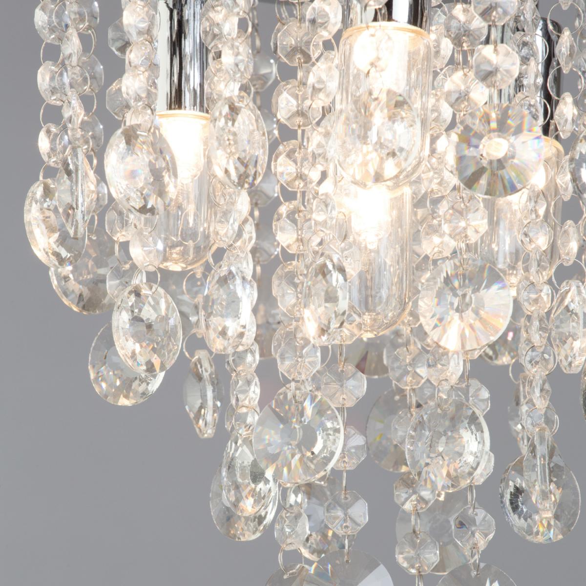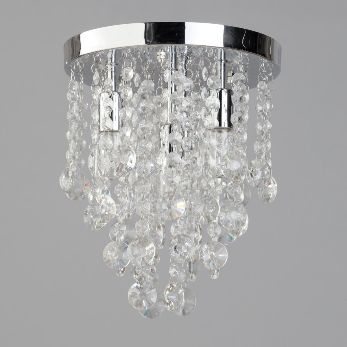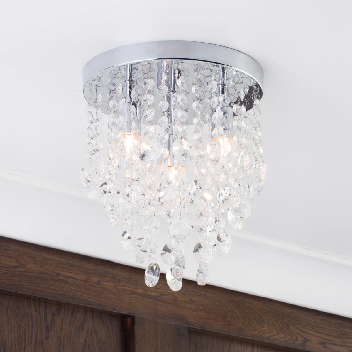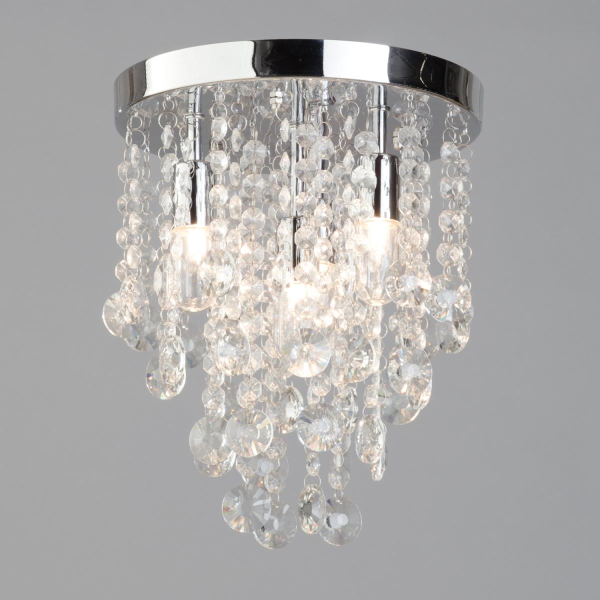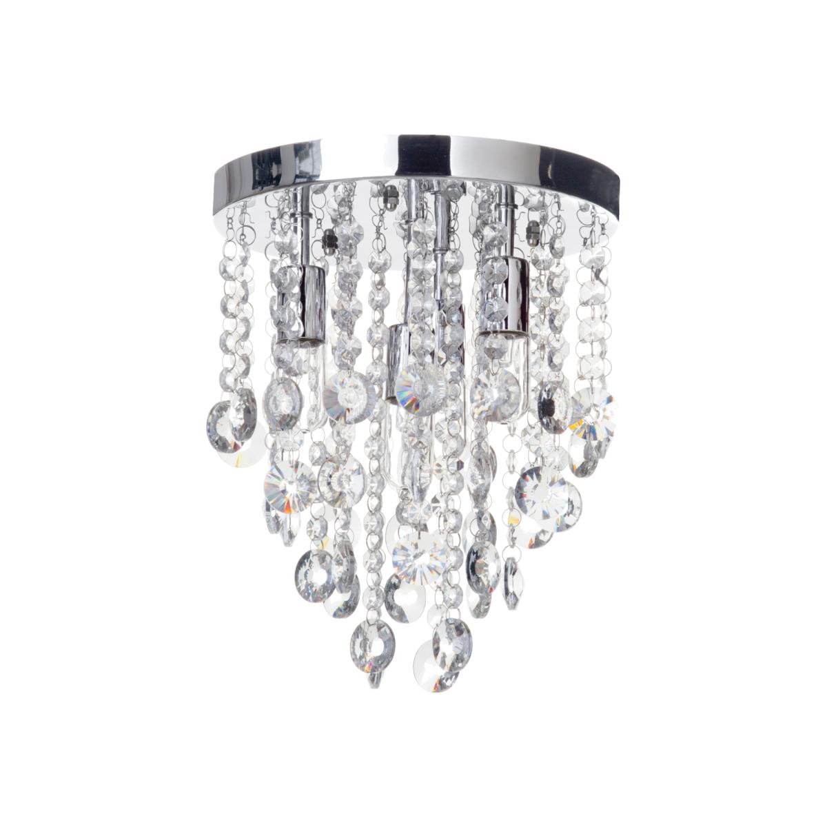 Add some modern opulence to your bathroom with the Turin Semi Fish Ceiling Light in Chrome. The chrome base of this IP44 ceiling light effortlessly adds to any modern bathroom style. The crystal effect droplets of this bathroom ceiling fixture create a playful lighting effect.